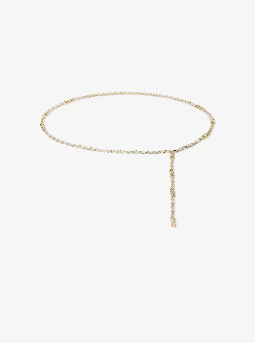 Ten pasek z ogniwami łańcuszkowymi ozdobiony jest monogramem Empire wysadzanym pavé i zapięciem na klamrę, które pozwala na regulację długości, aby idealnie dopasować go do sylwetki. Noś go, aby stworzyć swobodną stylizację dżinsową na wieczorne wyjście.