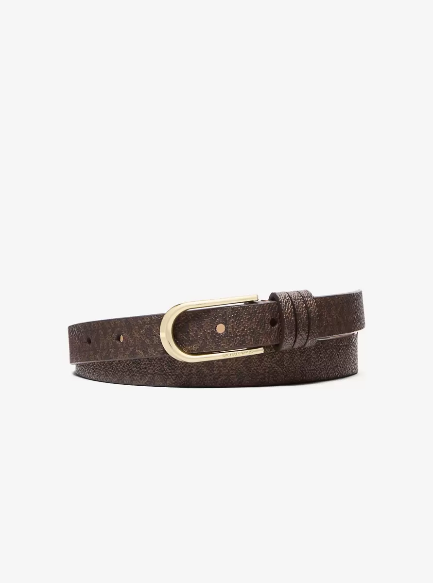 Ten pasek z nadrukiem Signature to szykowny i niezawodny sposób na dopełnienie stylizacji oryginalnym urokiem. Wykonany z wytrzymałego, powlekanego płótna, charakteryzuje się niezwykle gładkim wykończeniem i błyszczącą, geometryczną klamrą. Uzupełnij okucia złotymi dodatkami.