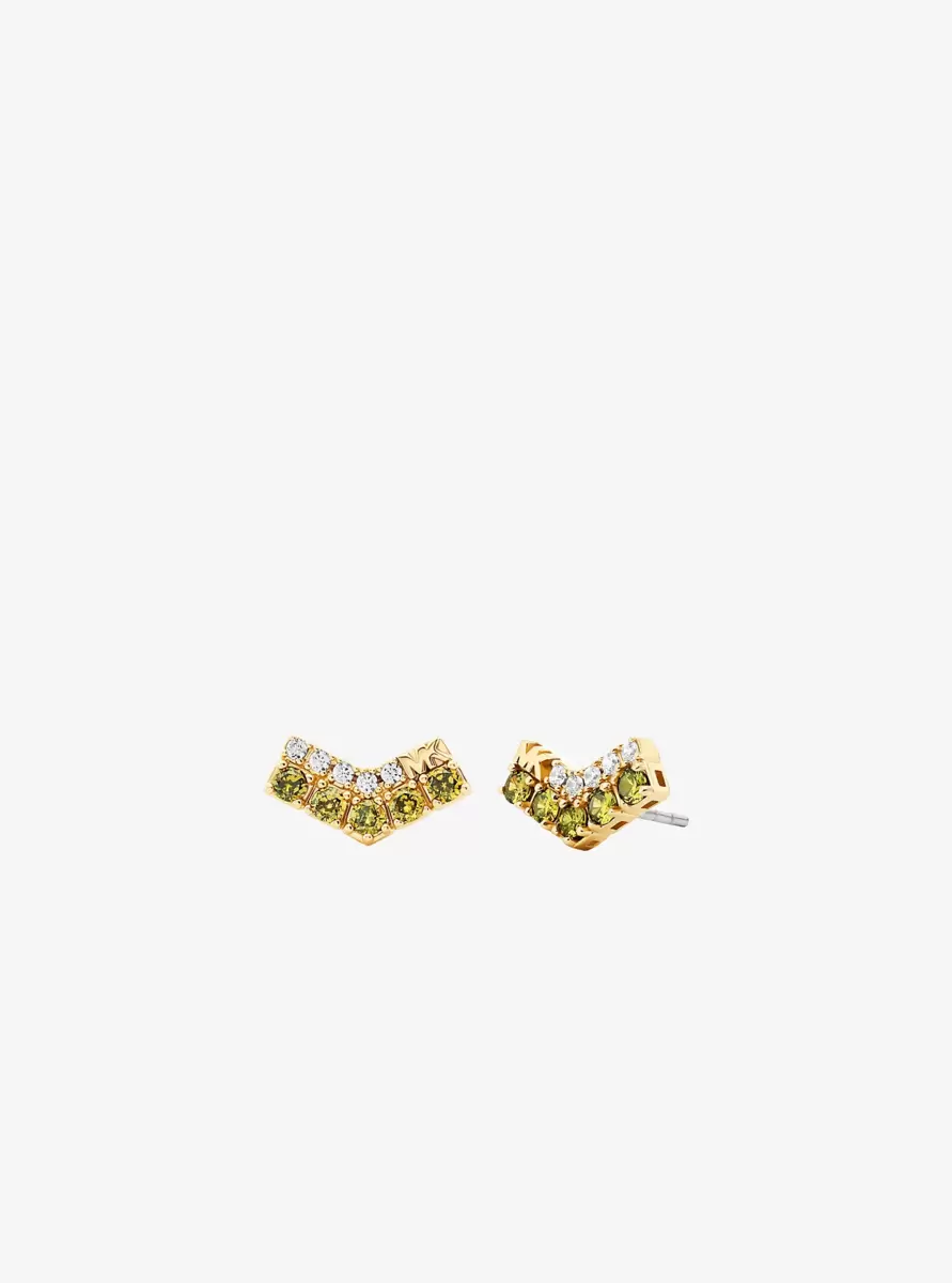Te dwukolorowe kolczyki z oprawą pavé i zielonymi kamieniami szlachetnymi zapewnią Ci codzienną dawkę blasku. Wykonane z mosiądzu platerowanego szlachetnym metalem, jodełkowe wzory to nieoczekiwany wybór, który dobrze komponuje się z innymi kolczykami i sztyftami, tworząc niepowtarzalny wygląd.