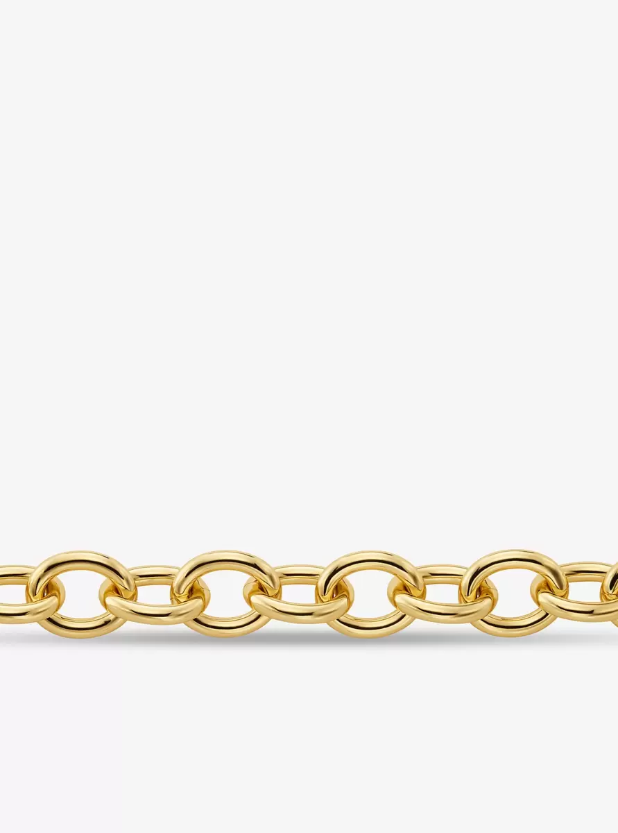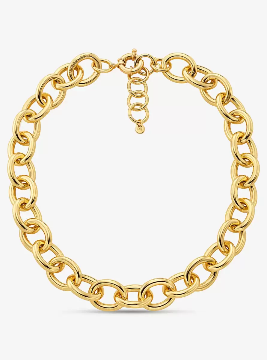 Ten wyrazisty element biżuterii, który możesz nosić na co dzień, jest wykonany z mosiądzu i pokryty szlachetnym metalem. Duże, polerowane ogniwa z pewnością przyciągną wzrok, noszone pod koszulą z kołnierzykiem lub jako dodatek do odsłoniętego dekoltu.