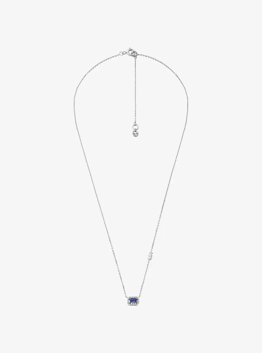 Niezwykle efektowny, ten srebrny naszyjnik to prosty, a zarazem efektowny wybór na wieczór. Łańcuszek z logo prezentuje efektowną cyrkonię sześcienną o szlifie szmaragdowym, oprawioną w odbijającą światło oprawę pavé, która doda biżuterii odpowiedniego blasku. Noś go warstwowo lub pozwól mu błyszczeć solo — w każdym razie, odmieni Twoją stylizację.