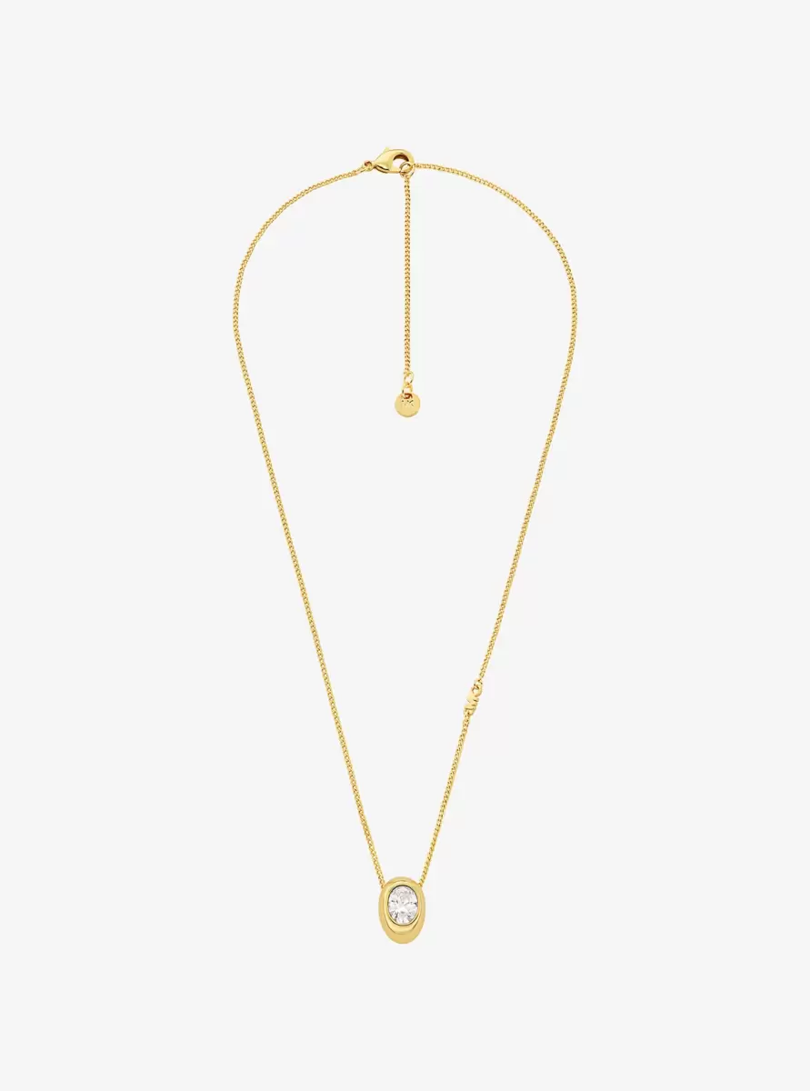 Ten naszyjnik to ponadczasowy dodatek, który sprawdzi się na każdą okazję. Na delikatnym łańcuszku zawieszono złoty, mosiężny wisiorek z owalną cyrkonią sześcienną. Noś go samodzielnie, aby uzyskać minimalistyczny look, lub nałóż kilka, aby uzyskać bardziej efektowny efekt.