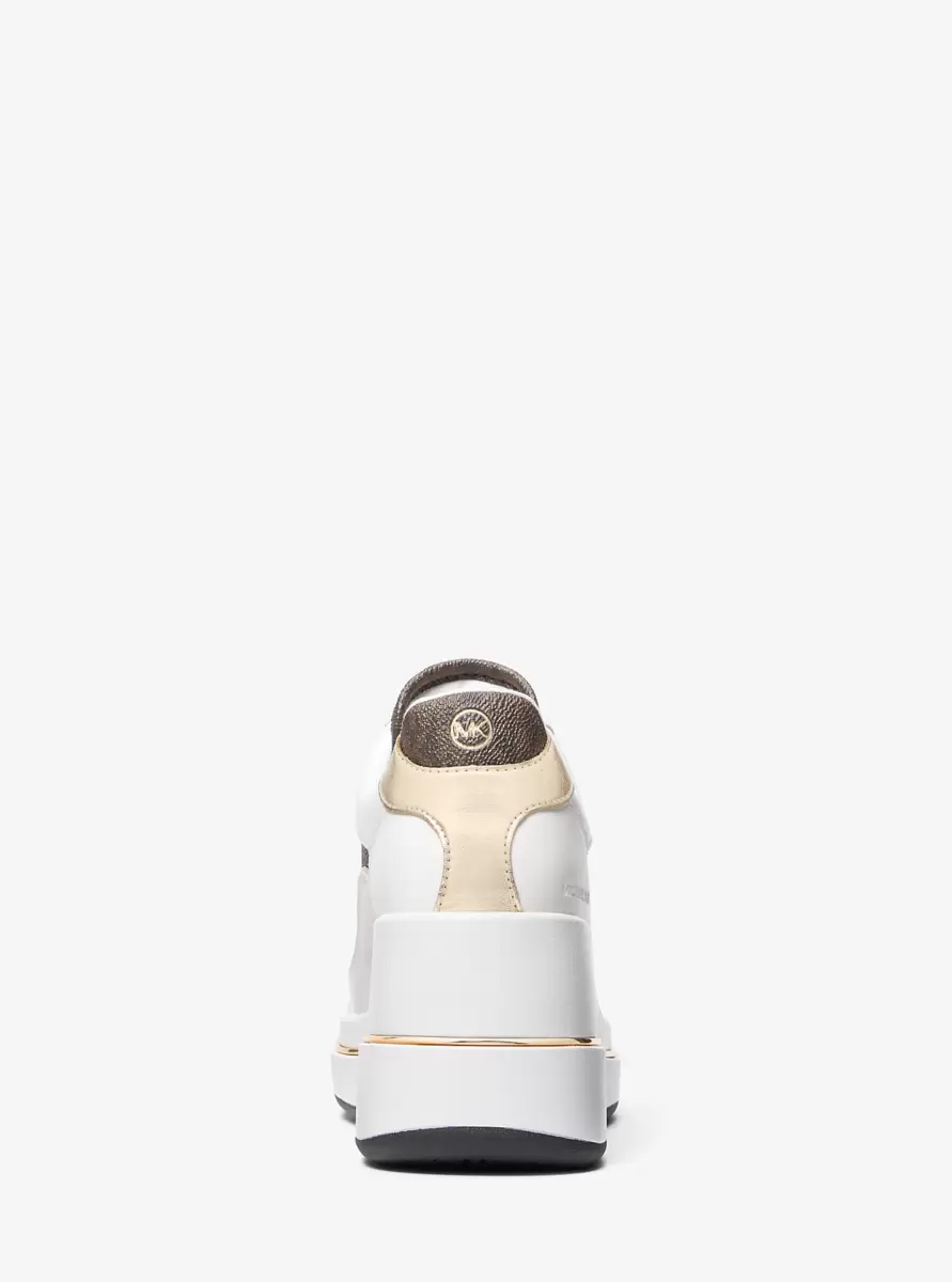 Nasze buty sportowe Emmy są zaprojektowane z myślą o modzie, ale nie można im odmówić wygody noszenia na co dzień. Wykonane z luksusowych paneli ze skóry i płótna z nadrukowanym logo, mają sznurowane zapięcie i koturn, który zapewnia subtelne uniesienie i amortyzację. Będą wyglądać stylowo, niezależnie od tego, czy wybierasz się na nieformalny brunch, czy załatwiasz sprawy w wielkim stylu.