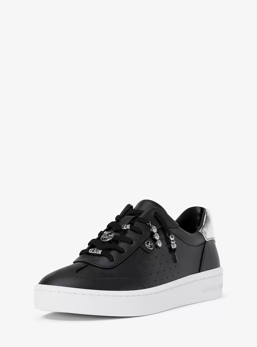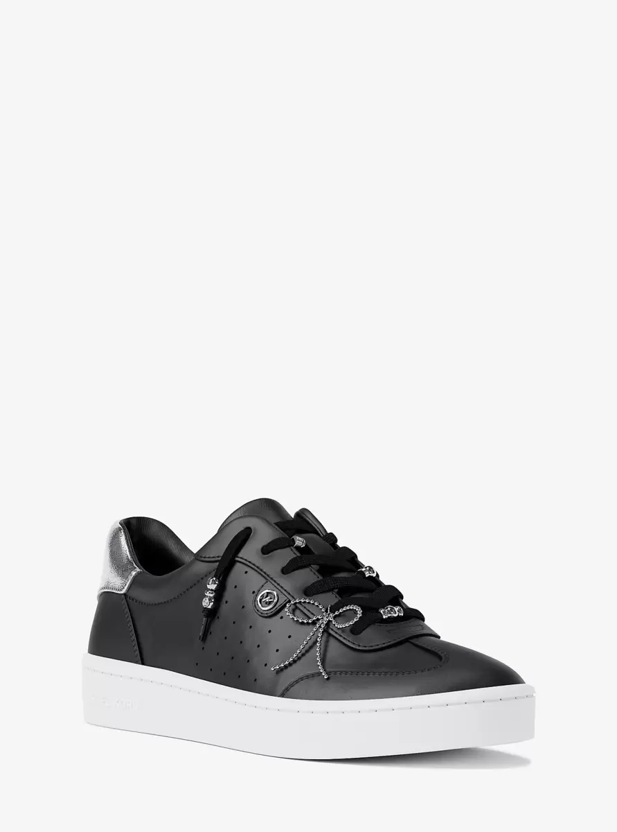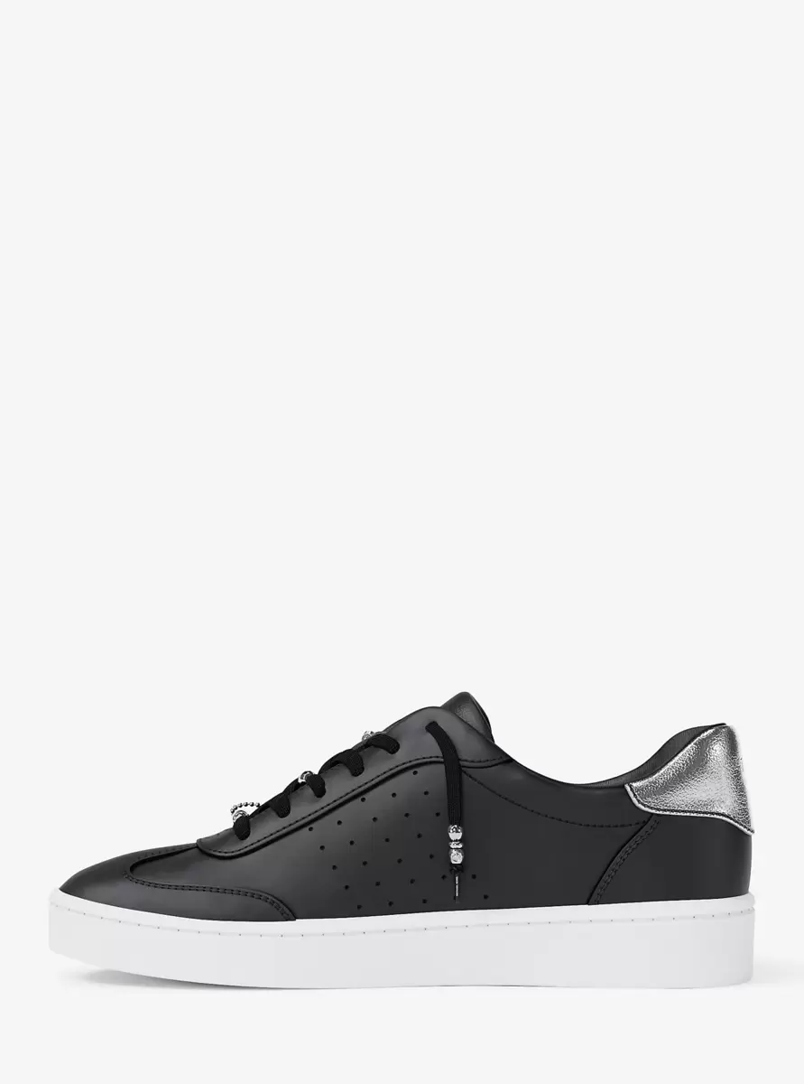 Poznaj Scotty: eleganckie, niskie buty sportowe inspirowane klasycznymi sylwetkami piłkarskimi. Ta skórzana para charakteryzuje się sportowymi perforacjami po bokach, metalicznym akcentem i błyszczącymi zawieszkami, które dodają im głębi. Możliwości stylizacji są nieograniczone, ale naszym zdaniem będą świetnie wyglądać w połączeniu z jasnym, spranym denimem w weekendy.