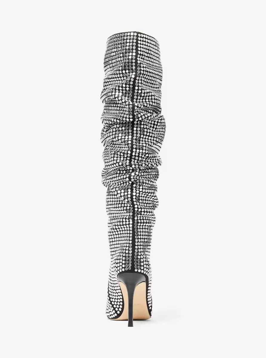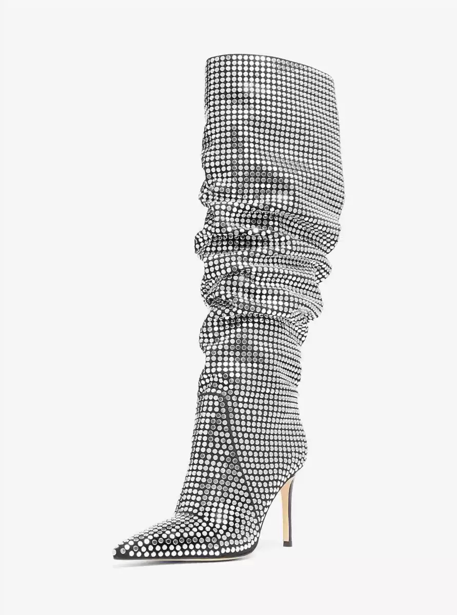 Nasze sięgające do kolan buty Dawn, ozdobione setkami płaskich ćwieków, to luźny fason, który doda charakteru każdej stylizacji. Niech będą modne w zestawieniu z jeansową mini spódniczką lub obcisłymi jeansami.
