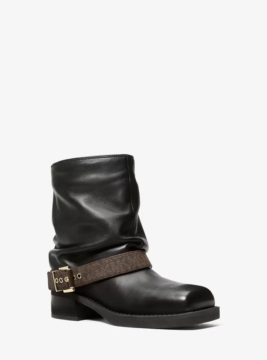 Buty motocyklowe zyskują szykowną reinterpretację dzięki botkom Colby. Wykonane z gładkiej skóry, z luźną cholewką i płóciennym paskiem z logo Signature, idealnie komponują się ze wszystkim, od dżinsu po zwiewne sukienki.