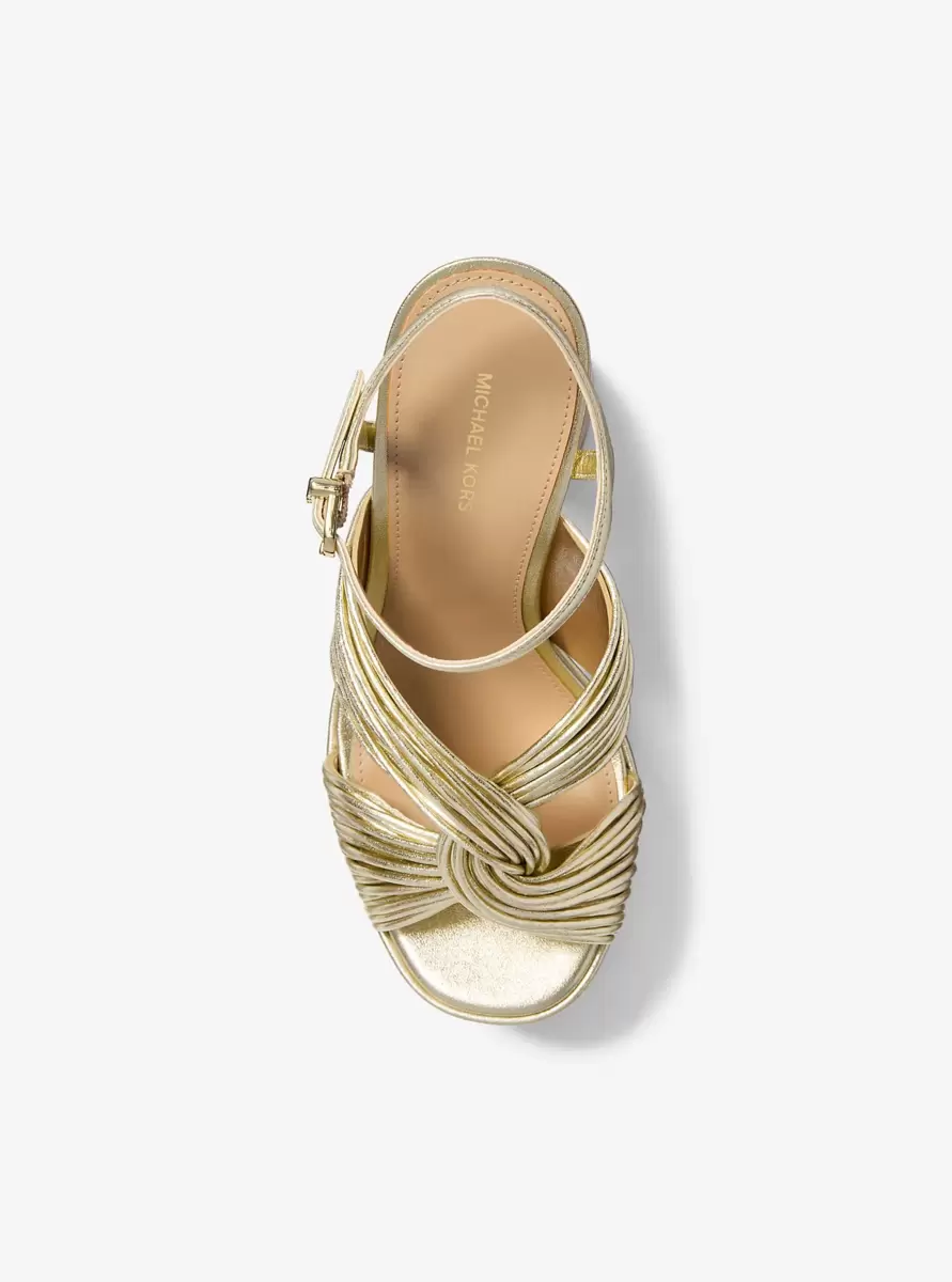 Poczuj retro glamour w naszych sandałach na platformie Alessia. Ten zapierający dech w piersiach model wynosi stylizacje na nowy poziom dzięki gładkiej, metalicznej powierzchni zewnętrznej i teksturowanym paskom, które oprawiają stopę i dodają uroku. Wyeksponuj je krótkim dołem podczas kolejnego wieczornego wyjścia.