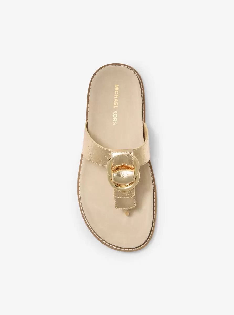 Lekkie, a zarazem eleganckie, nasze klapki Jaden szybko staną się Twoim ulubionym obuwiem w tym sezonie. Wykonane z teksturowanej, metalicznej skóry, zdobią lśniące metalowe detale i wygięta wkładka dla dodatkowego komfortu. Niezależnie od tego, czy zestawisz je z przewiewnym, lnianym zestawem na wakacjach, czy z elegancką sukienką maxi na mieście, dodadzą blasku każdej słonecznej stylizacji.