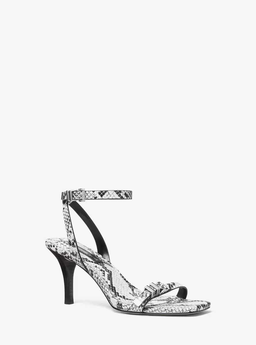 Nasze sandały Darrington łączą elegancką sylwetkę z wyrazistą skórą z wytłoczonym wzorem węża, tworząc przyciągający wzrok wygląd. Osadzony na obcasie warstwowym, ten model odpowiedni na co dzień i na noc jest ozdobiony polerowanymi okuciami dla odrobiny blasku.