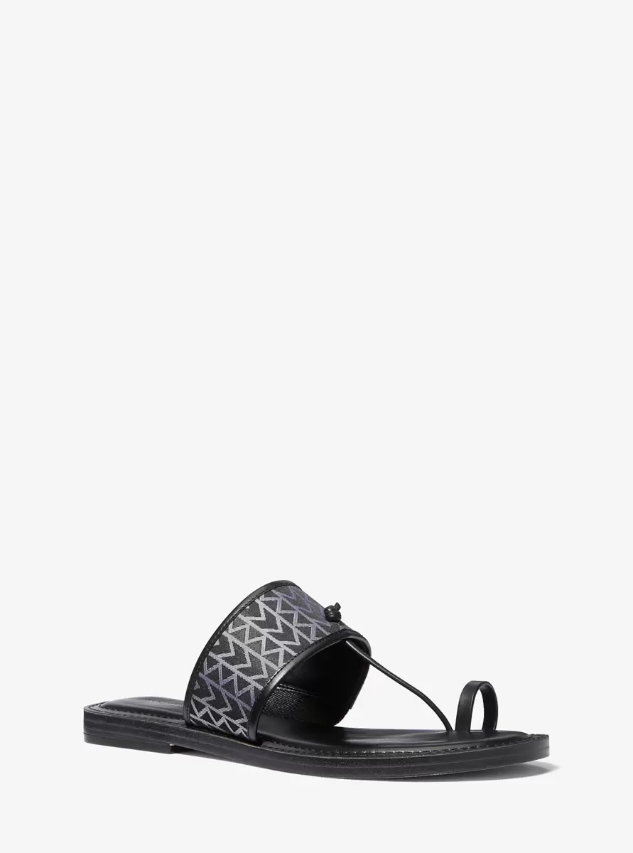 Od ciepłych dni w mieście po słoneczne wypady, nasze sandały Ashtin sprawdzą się w każdej sytuacji. Ponadczasowy pasek w kształcie litery T zdobi logo MK2000 z żakardu, a wspierająca pętelka na palce dodaje im nowoczesnego charakteru. Noś je ze wszystkim, od sukienek letnich na ramiączkach po dopasowane szorty.
