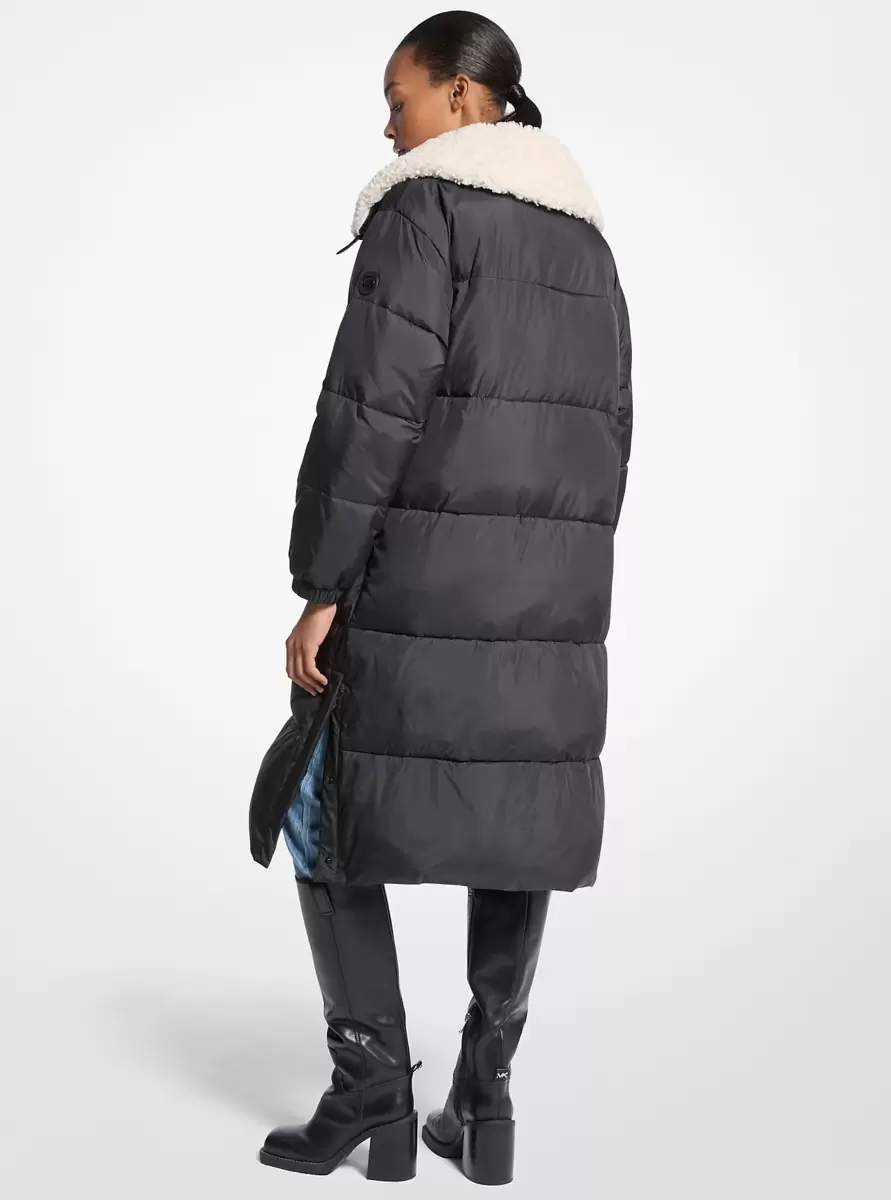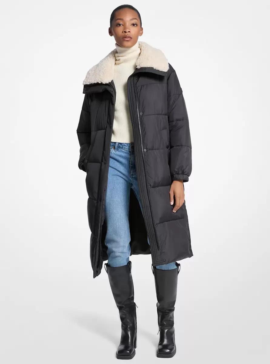Przytulne ciepło łączy się z eleganckim stylem. Ta długa kurtka puchowa, podstawowy element garderoby na zimne dni, została zaprojektowana z pikowaną, puchową powłoką i składanym kołnierzem z obszyciem ze sztucznego futra dla dodatkowego komfortu. Kieszenie na zatrzaski to praktyczny dodatek – idealny do przechowywania telefonu, kluczy i innych drobiazgów.