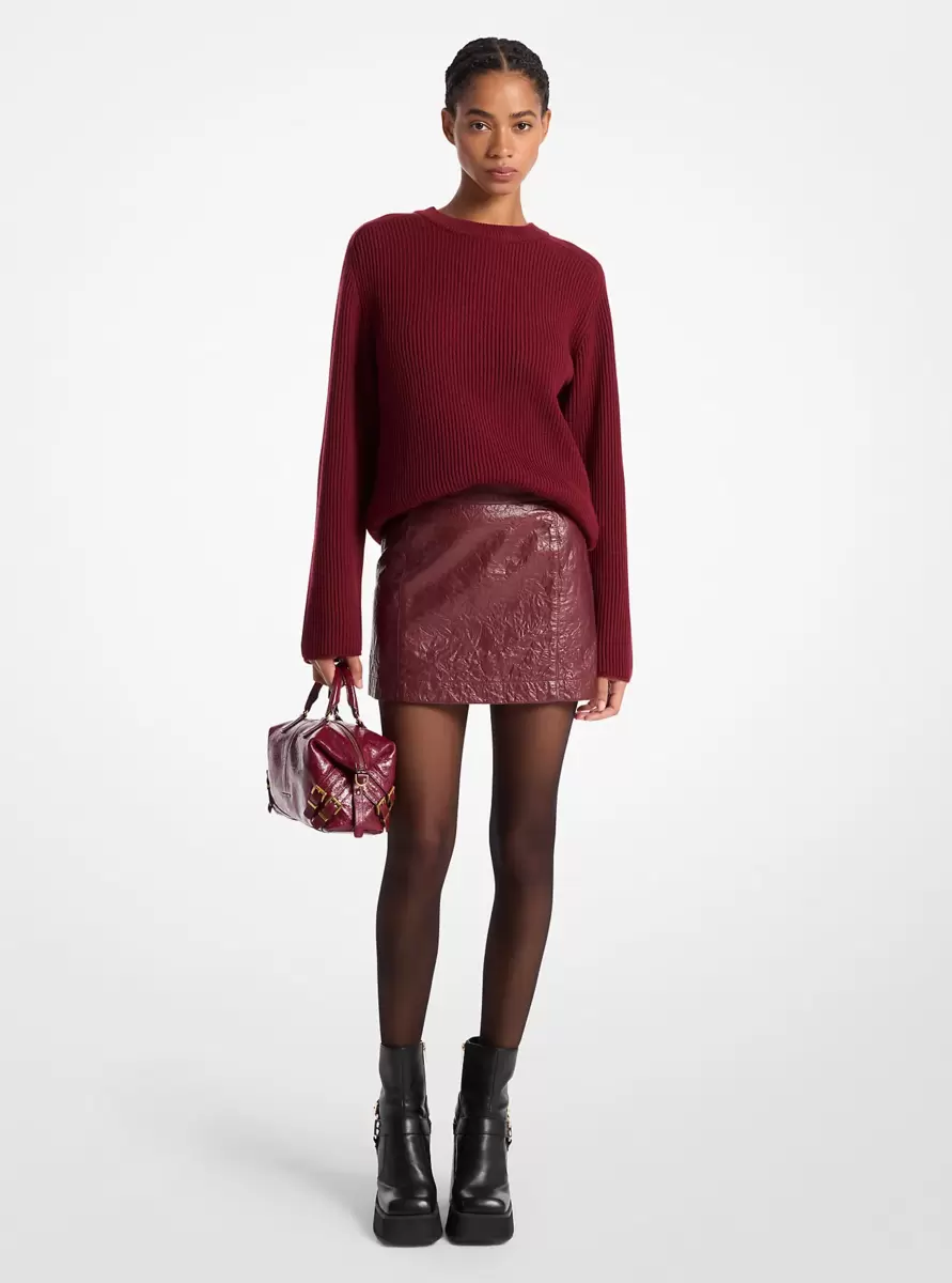 Wykonana z pranej skóry, ta szykowna mini spódniczka jest niezwykle uniwersalna. Połącz dopasowany krój z przytulnym, obszernym swetrem, aby uzyskać swobodny zestaw na chłodne dni.