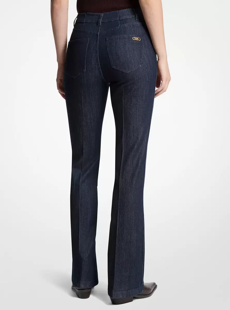 Inspirowany stylem retro, indygo denim powraca w tym sezonie. Oto para elastycznych jeansów bootcut z wąską nogawką, która delikatnie rozszerza się od kolana do kostki. Stwórz stonowany, miejski look z topem na ramiączkach, skórzaną kurtką, pasującym paskiem i botkami.