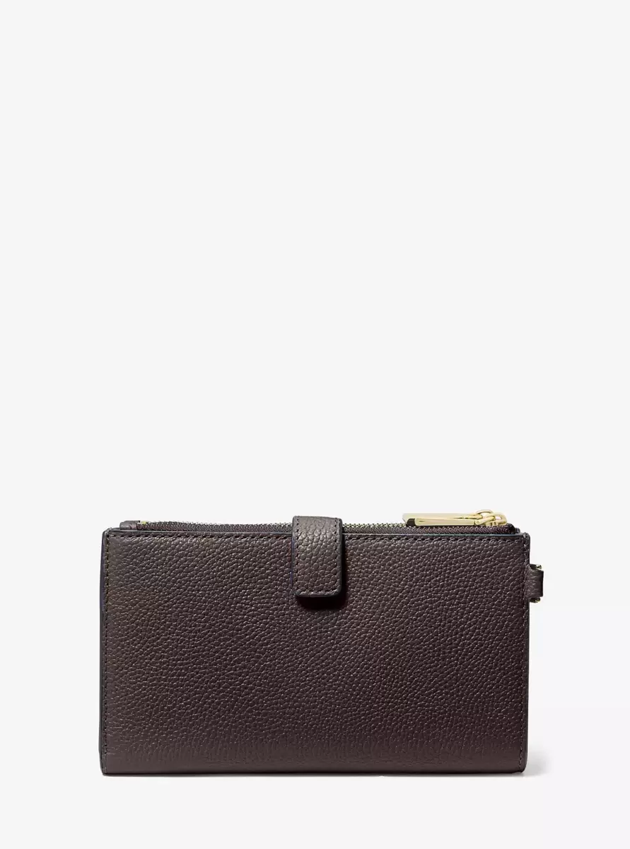 Wykonany z bogatej, groszkowanej skóry, dla ponadczasowego wyglądu, ten elegancki portfel ma dwie strony zapinane na suwak, które po rozłożeniu odsłaniają środek z kieszeniami na wszystkie niezbędne rzeczy, od kart kredytowych po smartfon. Pasek na nadgarstek dodatkowo zwiększa jego wszechstronność, dzięki czemu można go nosić samodzielnie lub w torbie.
