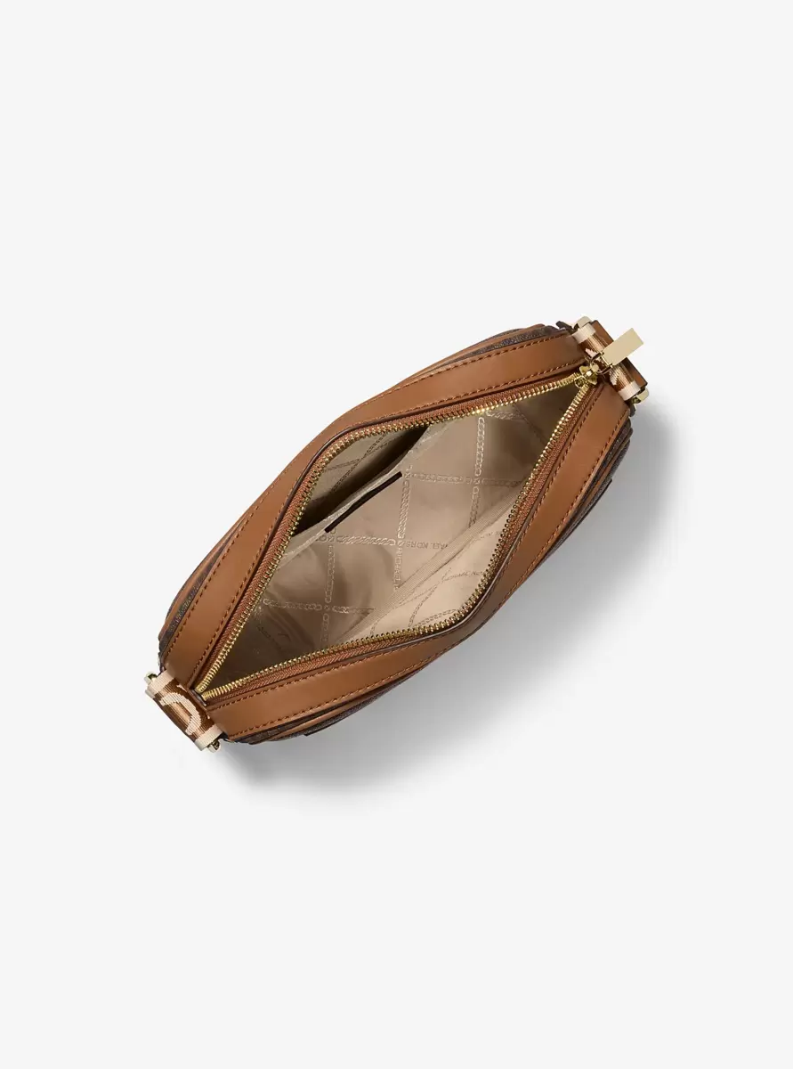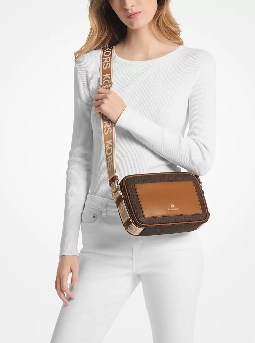 Nasza dwukolorowa torebka typu crossbody Maeve, w równym stopniu swobodna, co szykowna, to hołd dla charakterystycznego stylu. Z paskiem z logo na taśmie dla sportowego akcentu, ma sylwetkę inspirowaną aparatem fotograficznym i polerowane ćwieki w kształcie piramidek dla luksusowego wyglądu. Uwielbiamy to, jak liczne wsuwane kieszenie ułatwiają organizację w podróży.
