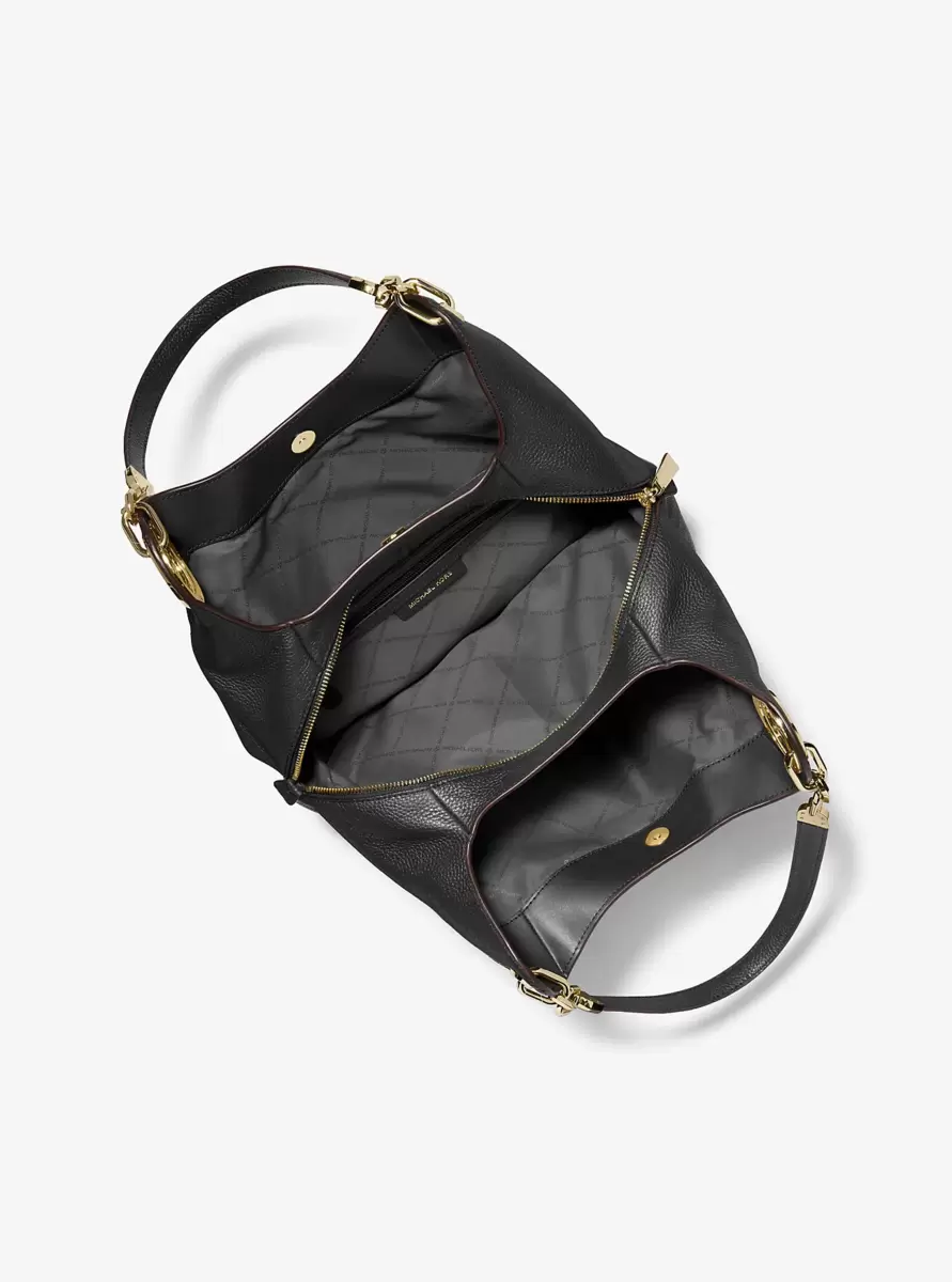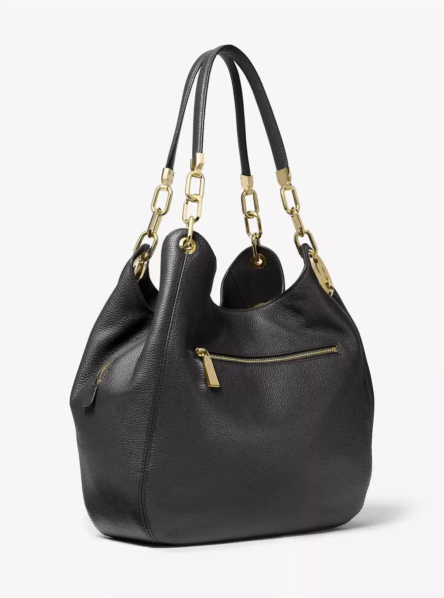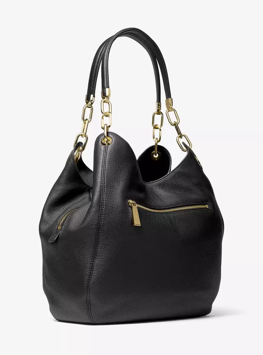 Nasza torba na ramię Lillie łączy ponadczasowy szyk z codzienną funkcjonalnością. Ta torba o luźnym fasonie i z naszymi charakterystycznymi dodatkami ma zewnętrzną stronę z groszkowanej skóry, która po otwarciu odsłania dwie przegrody na zatrzaski i bezpieczną kieszeń na zamek błyskawiczny. Możesz mieć pewność, że z łatwością pomieści wszystkie niezbędne rzeczy.