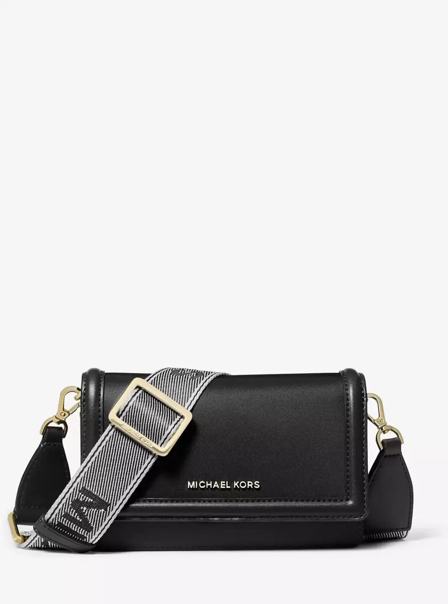 Nasza torba na ramię Jet Set na smartfona to małe cudo. Wykonana jest z nylonu gabardynowego z polerowanymi okuciami dla luksusowego wykończenia, a tylna kieszeń zapinana na zatrzask otwiera się na dyskretną przegródkę, w której bezpiecznie schowasz telefon. Noś ją bez użycia rąk dzięki tkanemu paskowi w dni, gdy chcesz podróżować lekko.