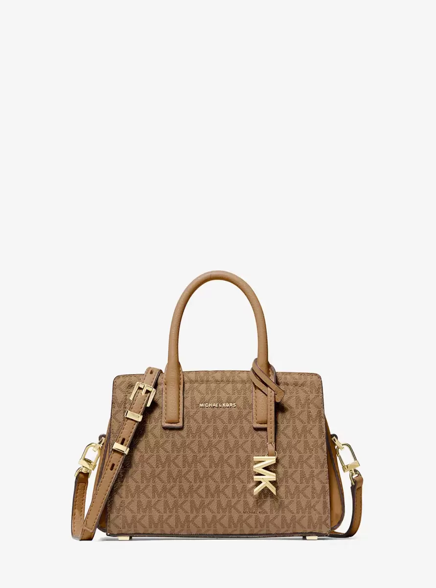 Odświeżyliśmy ulubioną przez fanów torbę Laila, nadając jej niewielki, a zarazem funkcjonalny krój. Ta płócienna, urocza torebka z nadrukowanym logo Signature, wyposażona w regulowany pasek na ramię, zapinana jest na dwukierunkowy zamek błyskawiczny, który otwiera się, odsłaniając przegródki mieszczące tylko najpotrzebniejsze rzeczy i szminkę. Całość uzupełniają błyszczące, złocone okucia i metalowe nóżki, które zapobiegają zarysowaniom.