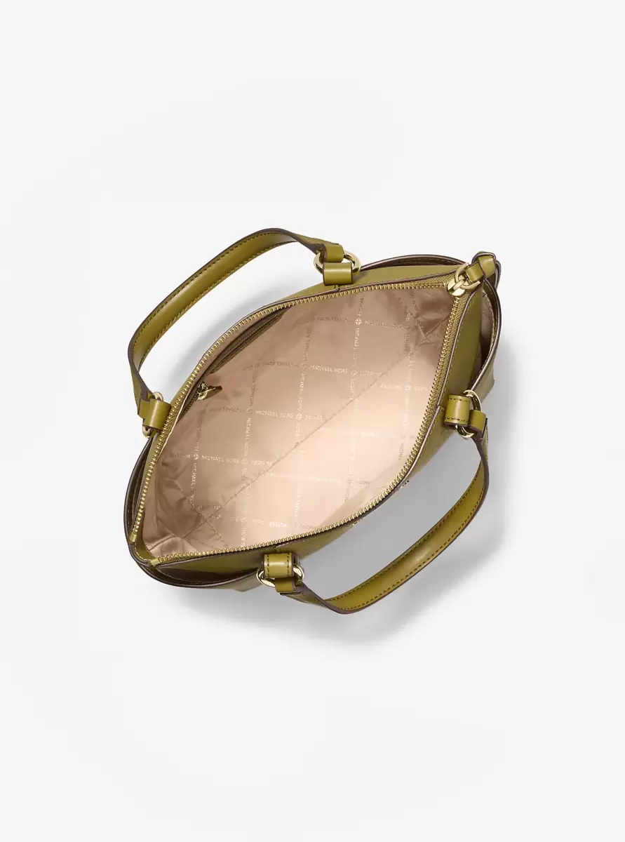 Torba Sullivan z suwakiem od góry, wyposażona w dwie zewnętrzne kieszenie boczne – zapewniające łatwy dostęp do najpotrzebniejszych rzeczy – oraz odpinany pasek na ramię, idealnie nadaje się do noszenia na co dzień. Złote okucia i skóra Saffiano łączą się, tworząc luksusowy efekt, a odpinany brelok z logo stanowi charakterystyczny akcent.
