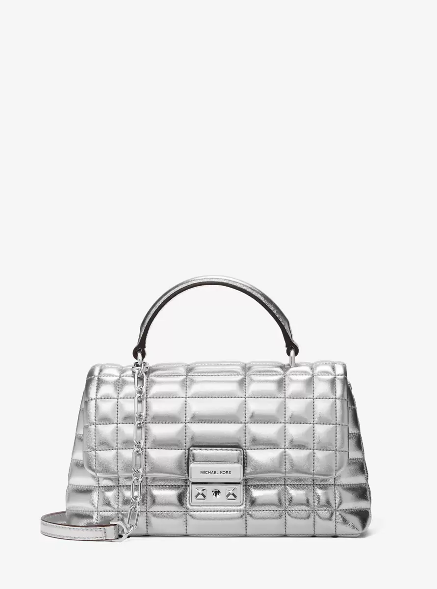 Torba skórzana pikowana metaliczna Tribeca średniej wielkości