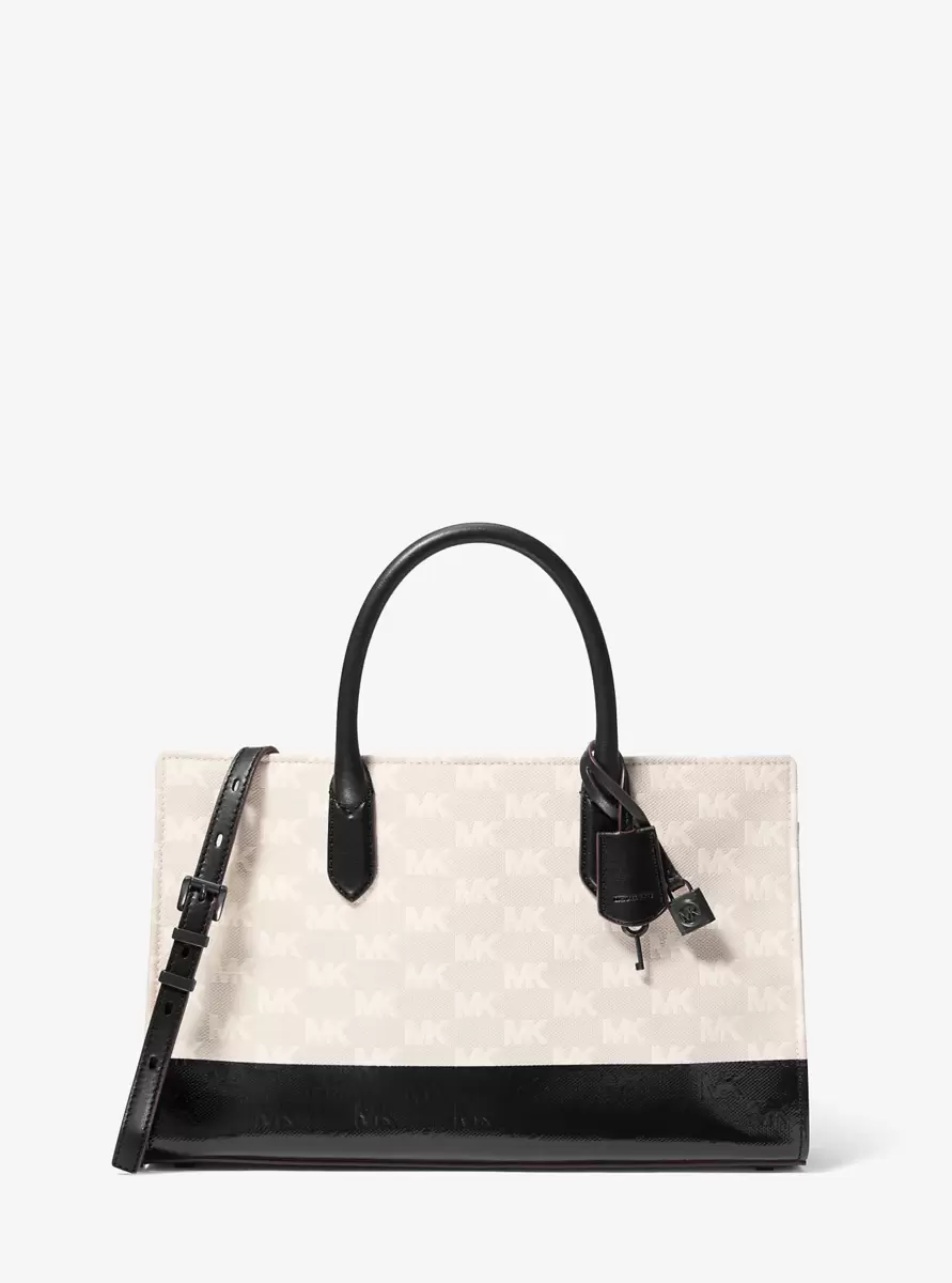 Łatwo zrozumieć, dlaczego torba Scarlett to torba na zawsze, do której będziesz wracać sezon po sezonie. Ta torba jest wykonana z żakardu z logo i wykończona lakierowaną skórą. Wnętrze wyściełane jest płótnem, a duża kieszeń na zamek błyskawiczny pozwala na przechowywanie drobiazgów. Do torby możesz doczepić pasek na ramię, gdy chcesz mieć wolne ręce.