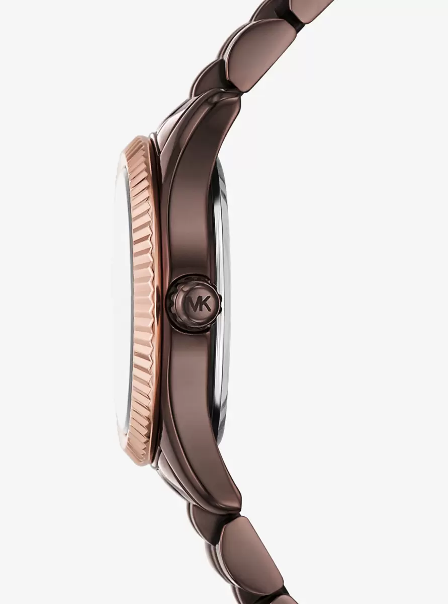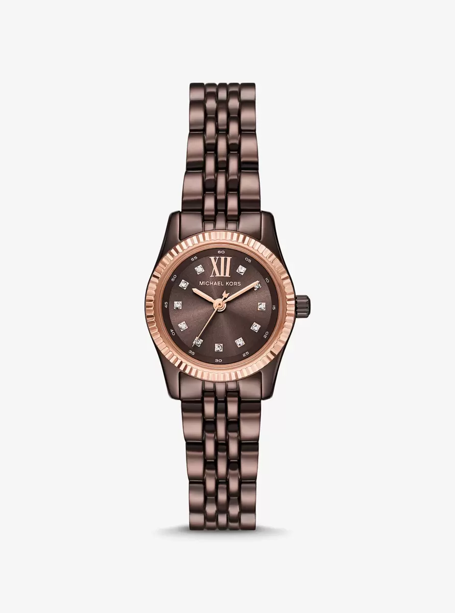 Zegarek Lexington emanuje codziennym blaskiem. Wykonany w całości ze stali nierdzewnej, ten miniaturowy zegarek ma okrągłą tarczę ze ściętym pierścieniem w kolorze różowego złota i bransoletą w kolorze espresso. Załóż go, aby dodać zarówno dziennym, jak i wieczorowym stylizacjom odrobinę wyrafinowanego uroku.