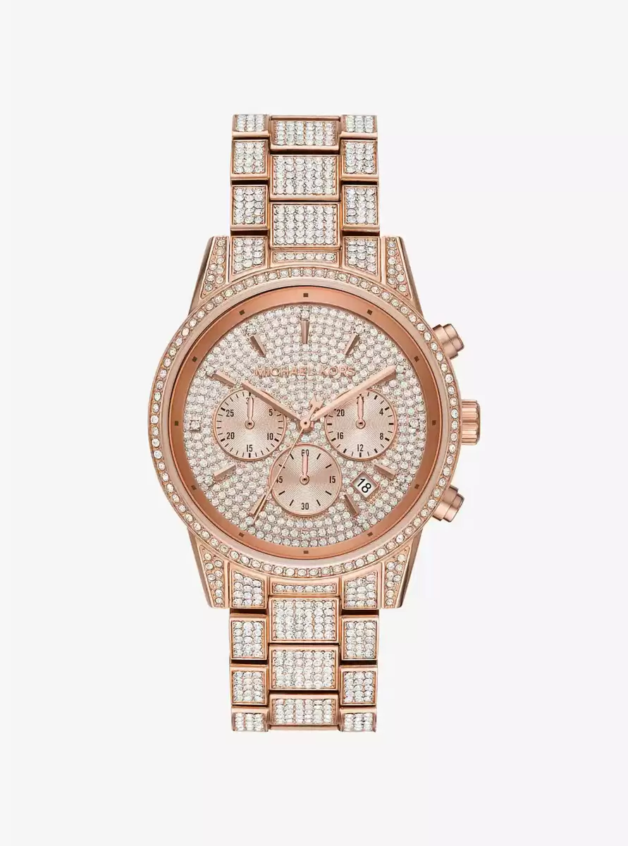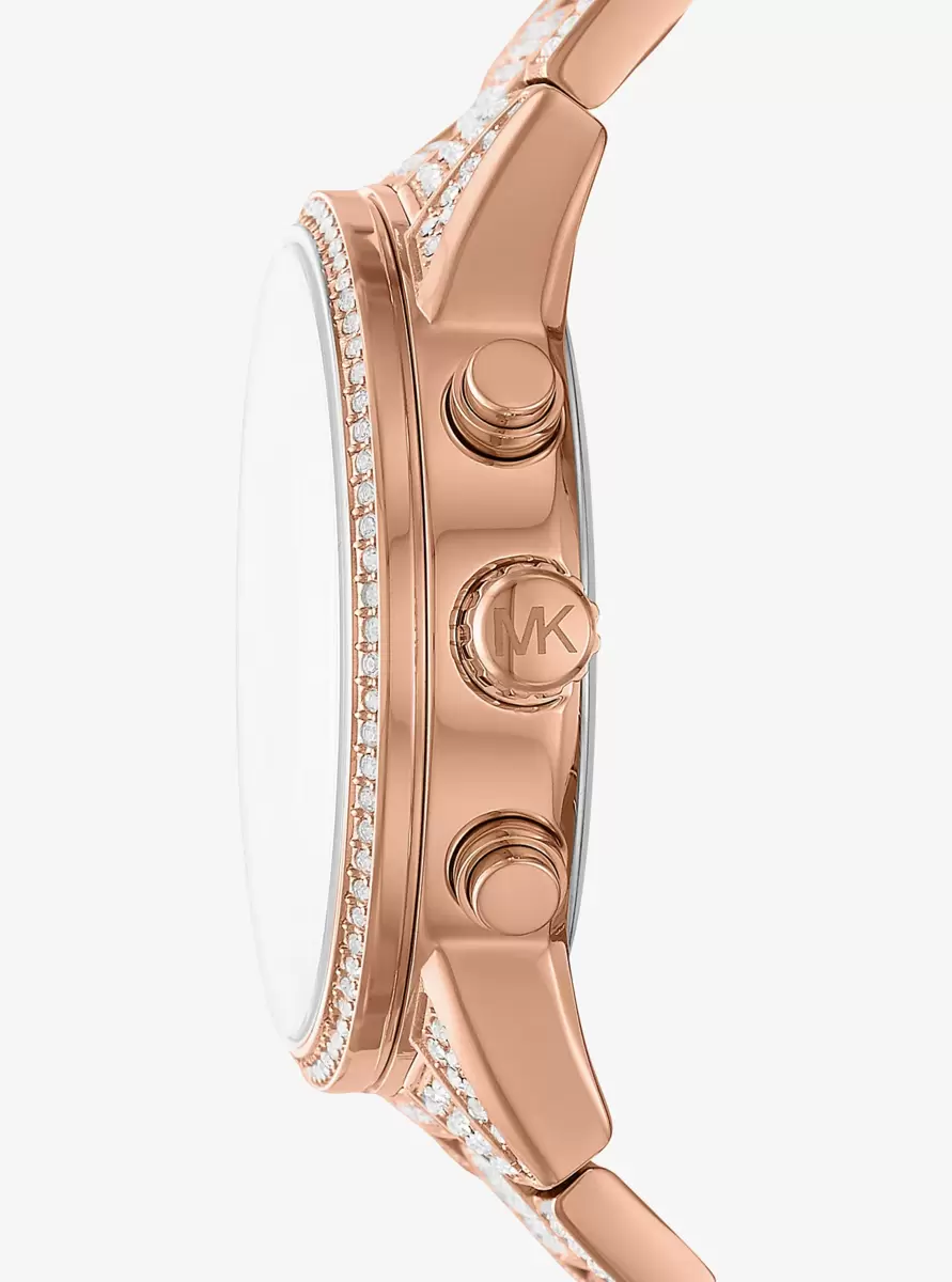 Lśniący i wyrafinowany zegarek Bryant łączy stal szlachetną w kolorze różowego złota z paskiem inspirowanym modą męską, tworząc szykowne i ponadczasowe wykończenie. Wyświetlacz chronografu zapewnia funkcjonalność, a zdobienia w całości pokryte warstwą pavé zapewniają maksymalny blask.