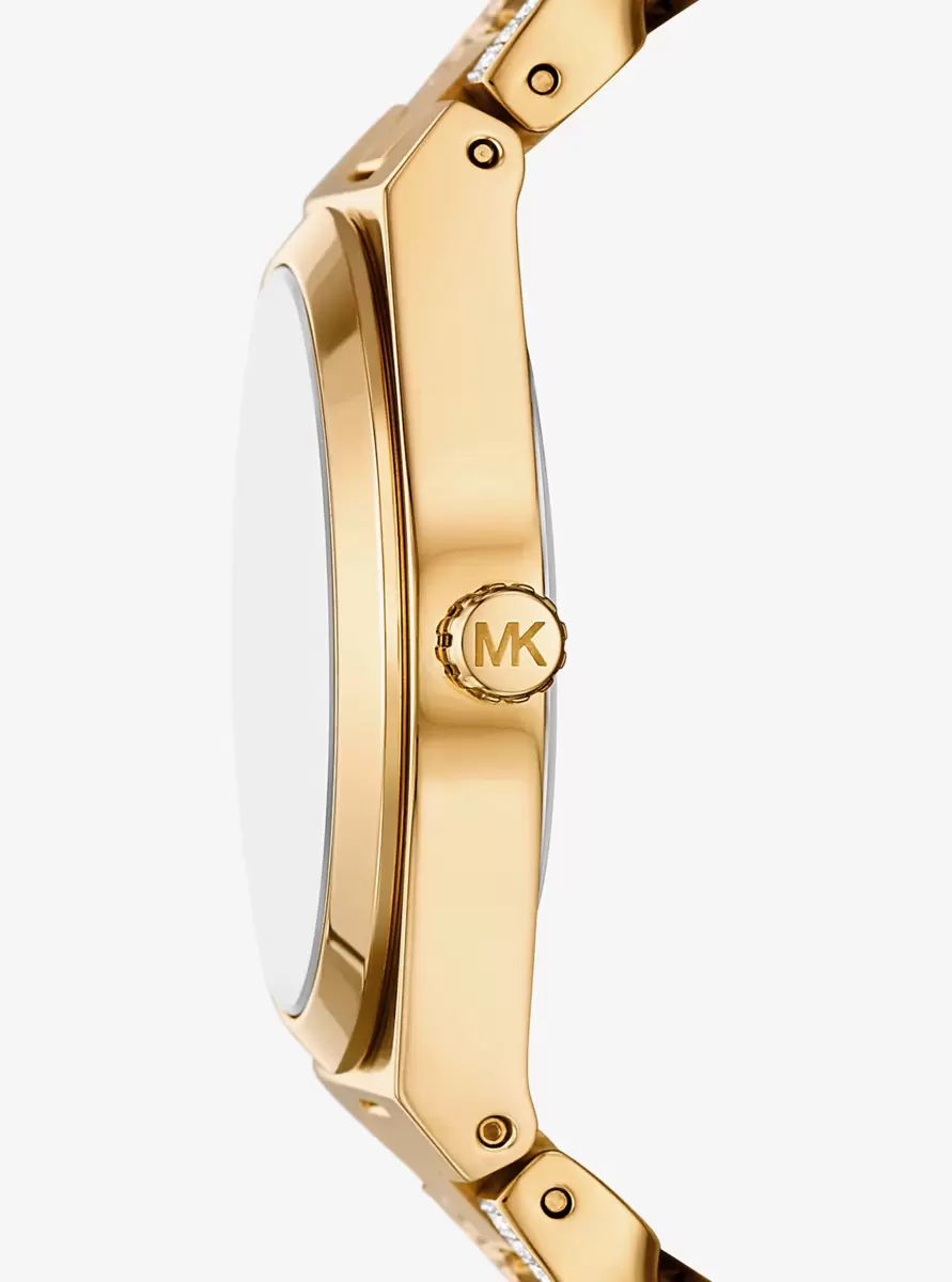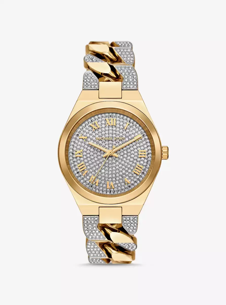 Wszechstronny zegarek o przyciągającym wzrok luksusowym charakterze, Lennox ponownie uderza nowym, lśniącym paskiem typu curb-link, wysadzanym pavé. Wykonanie ze stali nierdzewnej w kolorze złotym zapewnia polerowane wykończenie i trwałość. Załóż go z kilkoma bransoletkami, aby stworzyć wyjątkową okazję.