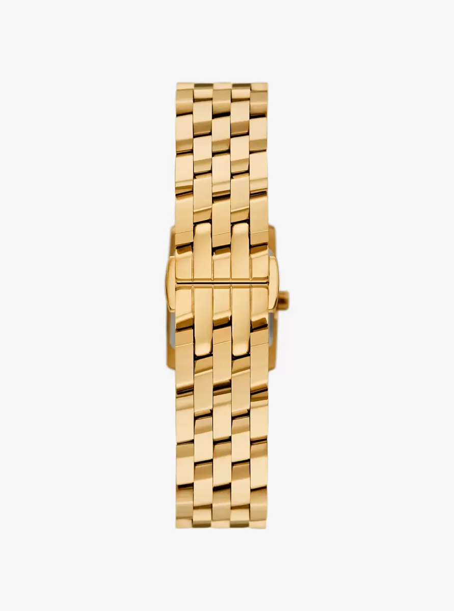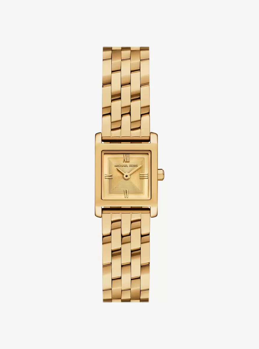 Ten mikro zegarek to najmniejszy model w naszej ukochanej kolekcji Georgie, charakteryzujący się wyrafinowaną, kwadratową sylwetką i teksturowaną tarczą. Wykonany ze stali nierdzewnej w kolorze złotym z klasyczną bransoletą ogniwową, ten delikatny zegarek oferuje dyskretny luksus, idealny zarówno na co dzień, jak i na specjalne okazje.