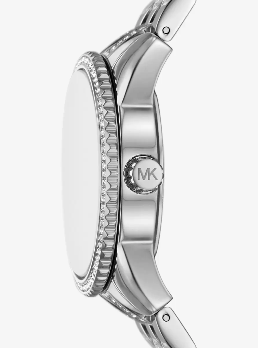 Nasz zegarek Bryant to uosobienie klasycznego glamouru. Lśniące inicjały MK zajmują centralne miejsce na tarczy tego miniaturowego czasomierza, a akcenty w oprawie pavé zdobią pierścień i pasek bransolety. Dodaj go do lśniącej kolekcji na nadgarstek, aby natychmiast uzyskać efekt „wow”.
