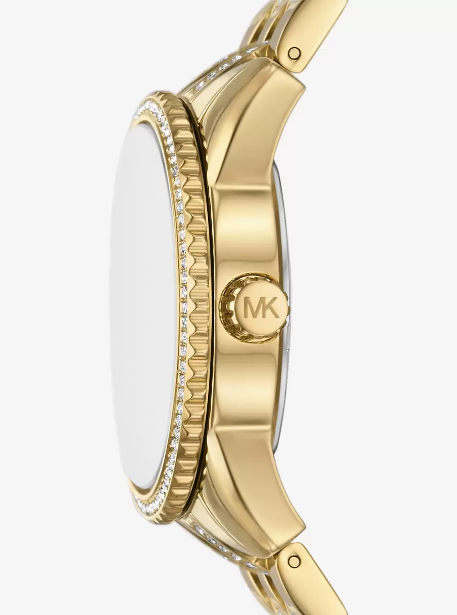 Nasz zegarek Bryant to uosobienie złoconego blasku. Lśniące inicjały MK zajmują centralne miejsce na tarczy tego miniaturowego czasomierza, a akcenty w oprawie pavé zdobią pierścień i pasek bransolety. Dodaj go do lśniącej kolekcji na nadgarstek, aby natychmiast uzyskać efekt „wow”.