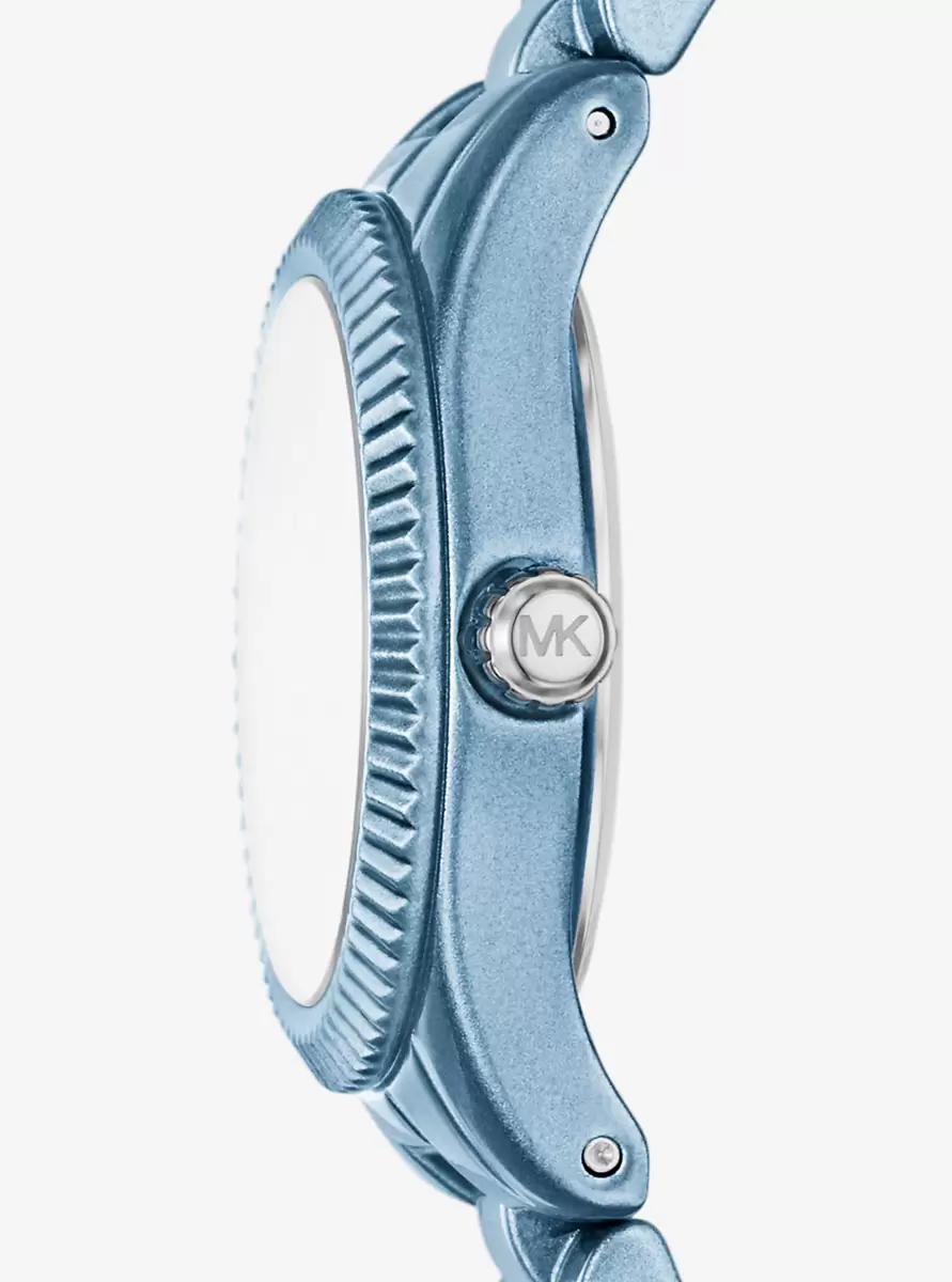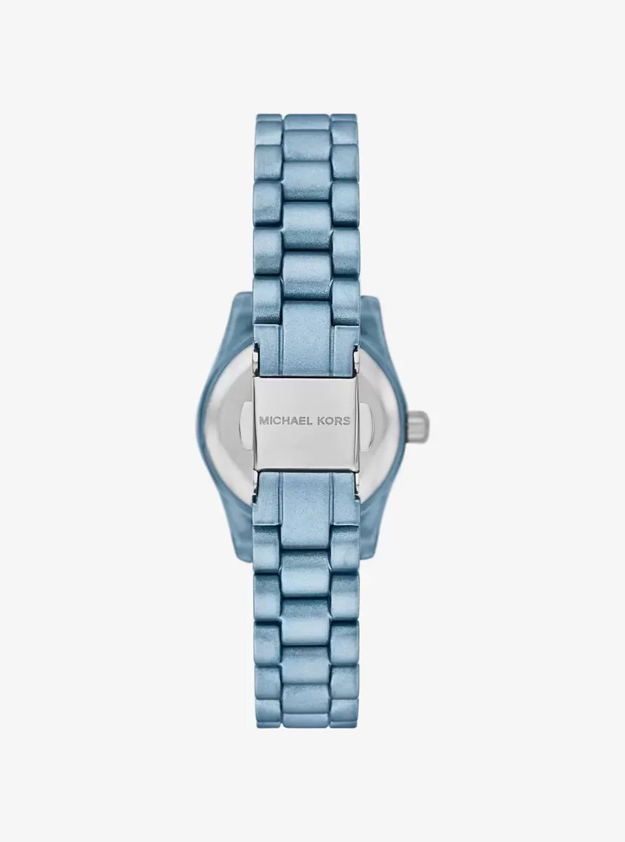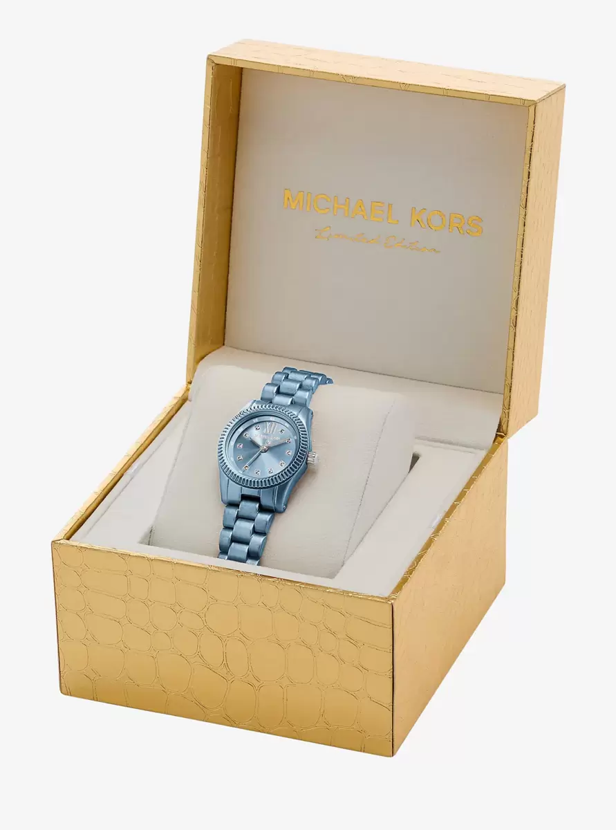 Odświeżony, z lśniącą oprawą pavé i srebrnymi akcentami, które dodają blasku, nasz niewielki zegarek Lexington emanuje codziennym blaskiem. Zanurzony w opalizującym, niebieskim odcieniu dla odważnego akcentu, ten limitowany model ma kopertę ze stali nierdzewnej, która obraca się, odsłaniając grawerowany podpis Michaela Korsa na deklu i unikalny numer identyfikacyjny. W komplecie ze ściętym pierścieniem i pasującym paskiem, ten delikatny zegarek doda zarówno dziennym, jak i wieczorowym stylizacjom odrobinę wyrafinowanego uroku.