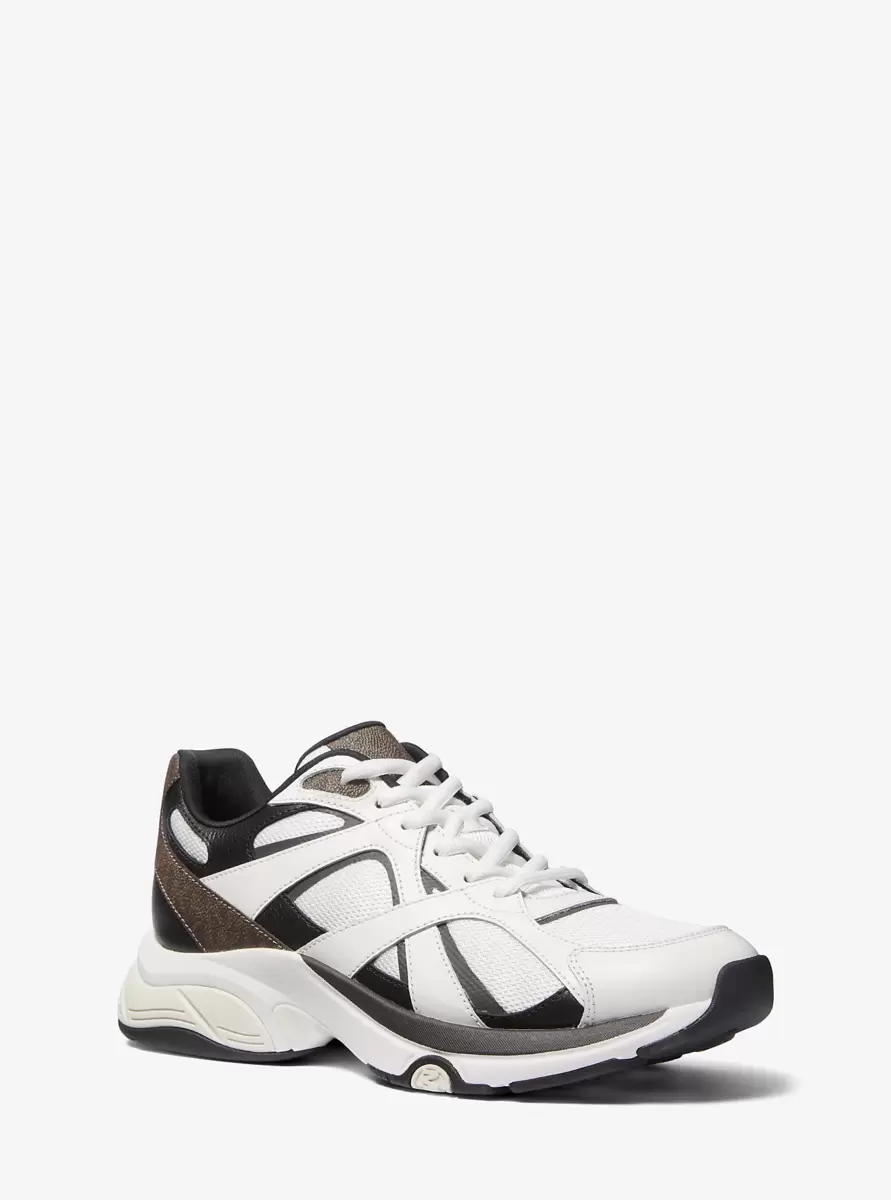 Nasze buty sportowe Leo to idealne sportowe buty do skompletowania stylizacji na co dzień. Przewiewna siateczka wykończona płótnem z nadrukiem Signature i skórą nadaje im elegancki wygląd, a gumowe podeszwy zapewniają komfort chodzenia. Dodadzą charakteru każdej stylizacji, od treningu po weekendowe wyjścia i nie tylko.