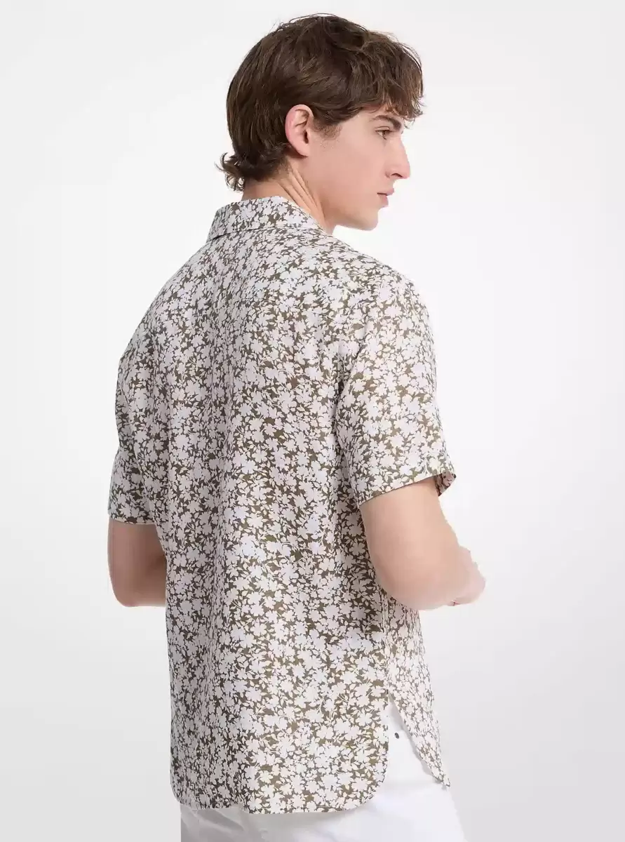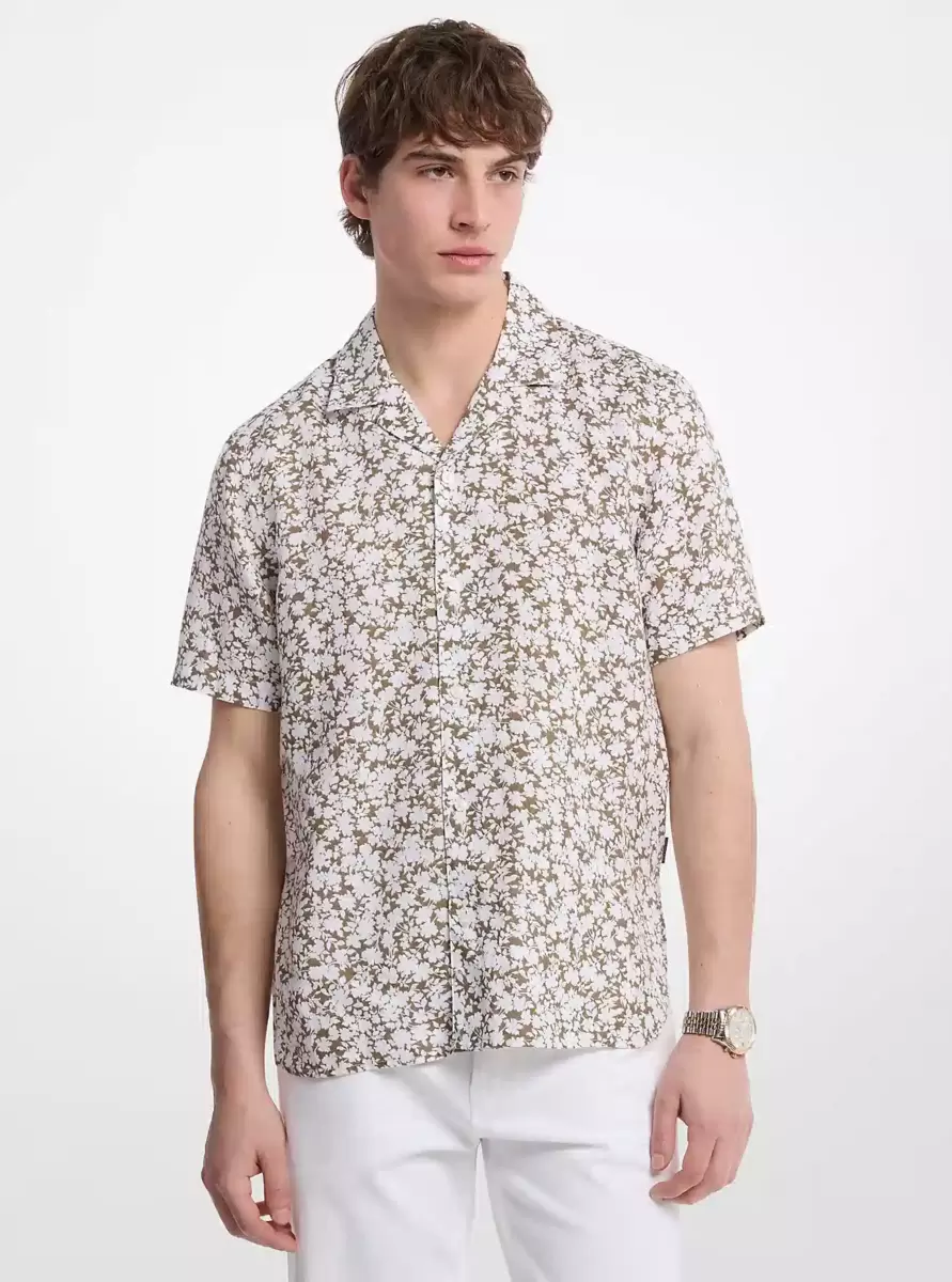 Przygotuj się na cieplejsze dni z tą koszulą kempingową, wykonaną z przewiewnego lnu i ozdobioną graficznym, kwiatowym nadrukiem. Noś ją z jeansami lub stwórz stylizację gotową na wakacje z białymi, lnianymi szortami.
