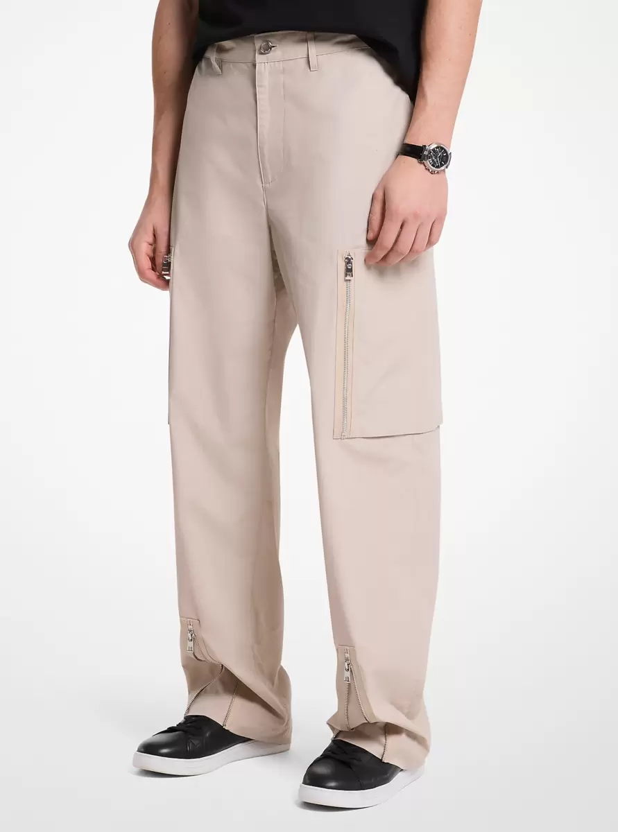 Spodnie cargo z bawełny popeliny z zamkiem błyskawicznym