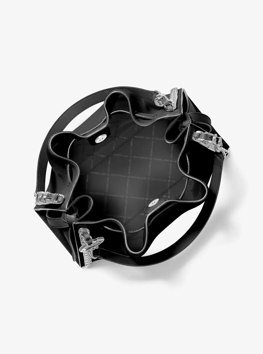 Nasza torba Mina, podstawowy element codziennego ubioru, nigdy nie wyjdzie z mody. Pojemne wnętrze i błyszczące łańcuszki dodają jej odrobinę blasku. Idealnie nadaje się do zarzucenia na ramię i łatwego przejścia z dziennego na wieczorowy.