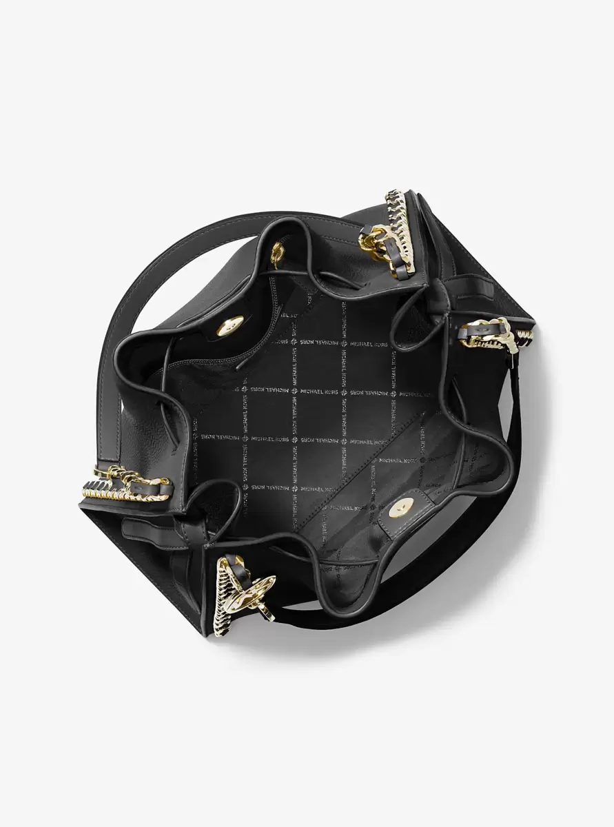 Nasza torba Mina, podstawowy element garderoby na co dzień, nigdy nie wyjdzie z mody. Pojemne wnętrze i błyszczące łańcuszki dodają jej odrobinę blasku. Idealnie nadaje się do zarzucenia na ramię i łatwego przejścia z dziennej do wieczorowej stylizacji.