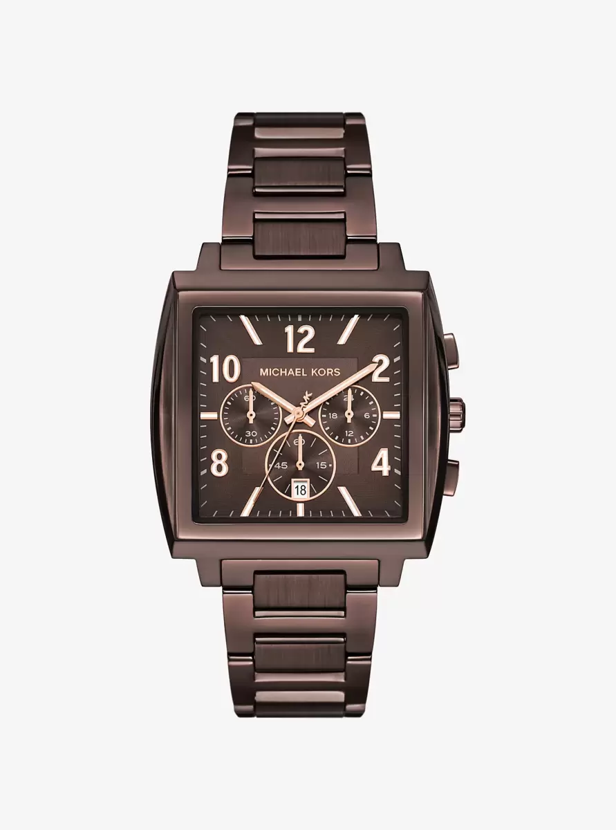 Zegarek Rhys zachwyca kwadratową kopertą i ciemnobrązową tarczą z cyframi w kolorze różowego złota. Wykonany ze stali nierdzewnej w odcieniu brązu, posiada wyrafinowaną bransoletę z naprzemiennie szczotkowanymi i polerowanymi wykończeniami. Idealnie pasuje do ciepłych, jesiennych tonów i przytulnych, teksturowanych dodatków.