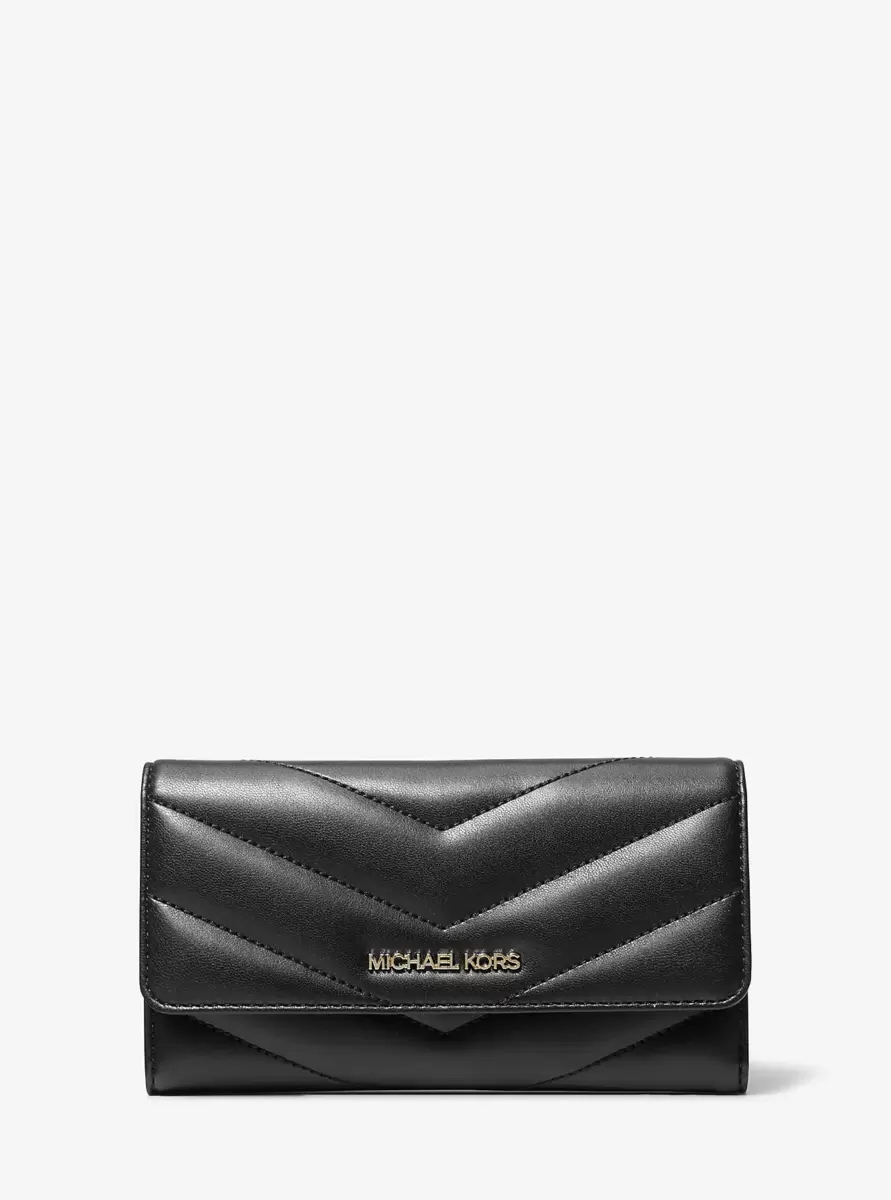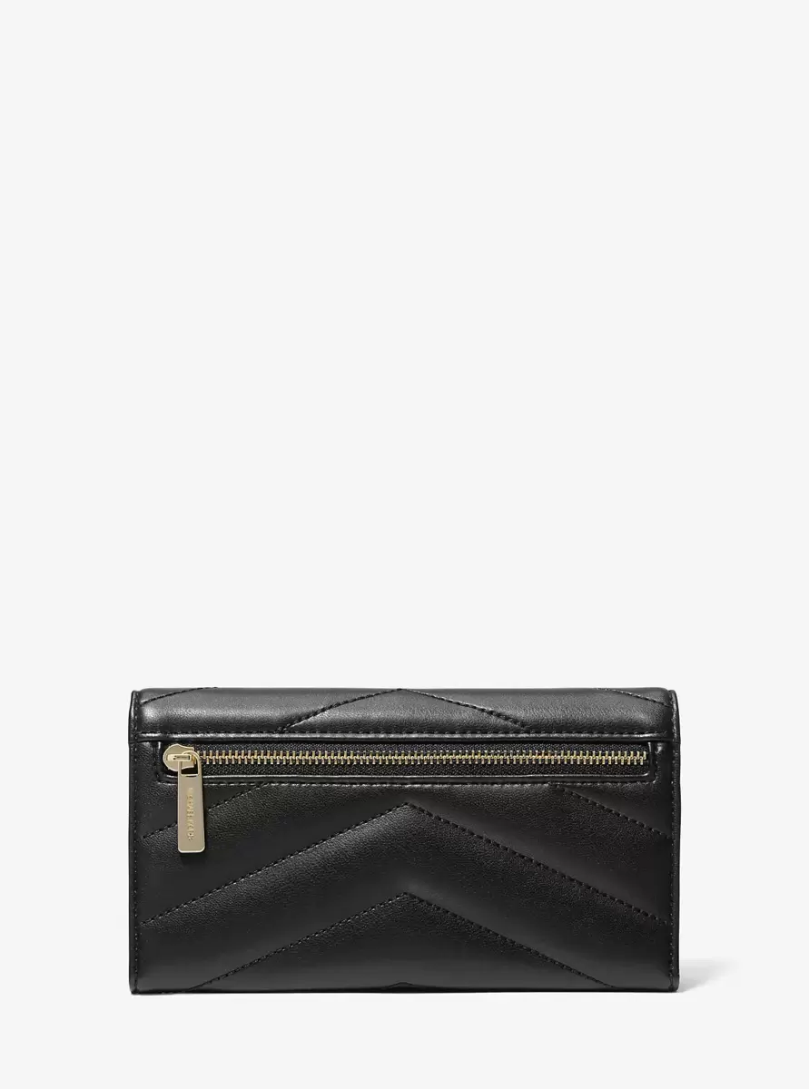 Ten duży portfel zapinany na zamek błyskawiczny, mieszczący do 17 kart i innych niezbędnych rzeczy, z pewnością stanie się Twoim ulubionym. Elegancka, pikowana powierzchnia zewnętrzna oferuje wiele przegródek, które pomogą Ci zachować porządek. Wrzuć go do ulubionej torebki lub noś samodzielnie, aby uzyskać prosty i efektowny wygląd.
