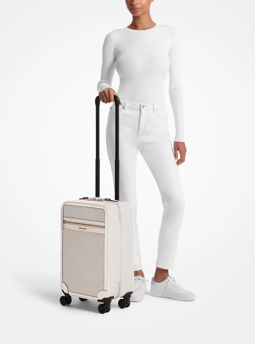 Nasza płócienna walizka z nadrukowanym logo Signature to definicja stylu pierwszej klasy. Wyposażona w wzmocnione rogi i eleganckie okucia, ta ponadczasowa walizka podręczna wyposażona jest w kółka obracające się o 360 stopni i otwiera się do wnętrza z przegródkami, które pozwolą Ci zachować najważniejsze rzeczy na miejscu podczas długich lotów. Zabierz tę ponadczasową walizkę na kolejną przygodę.