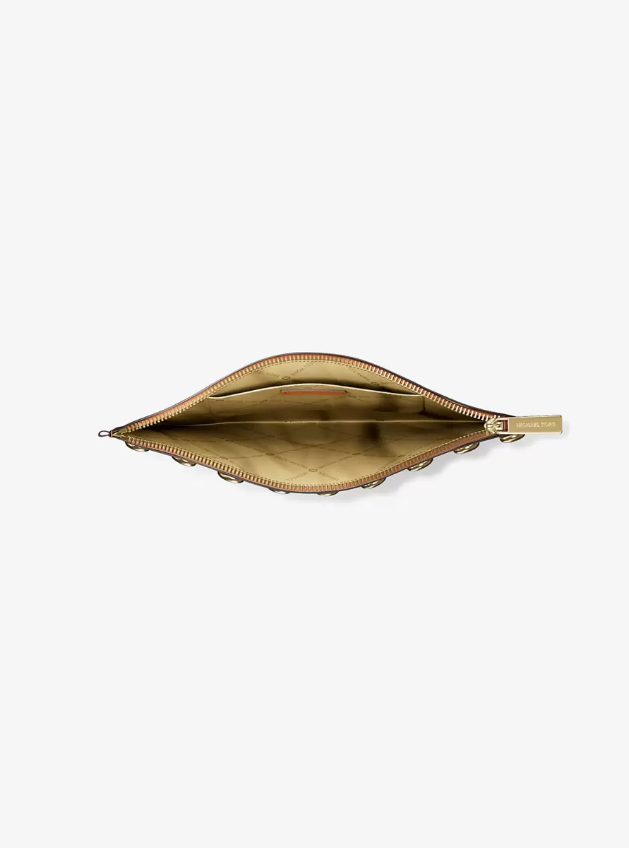 Duża torebka na nadgarstek Jet Set z ćwiekami ze skóry groszkowanej