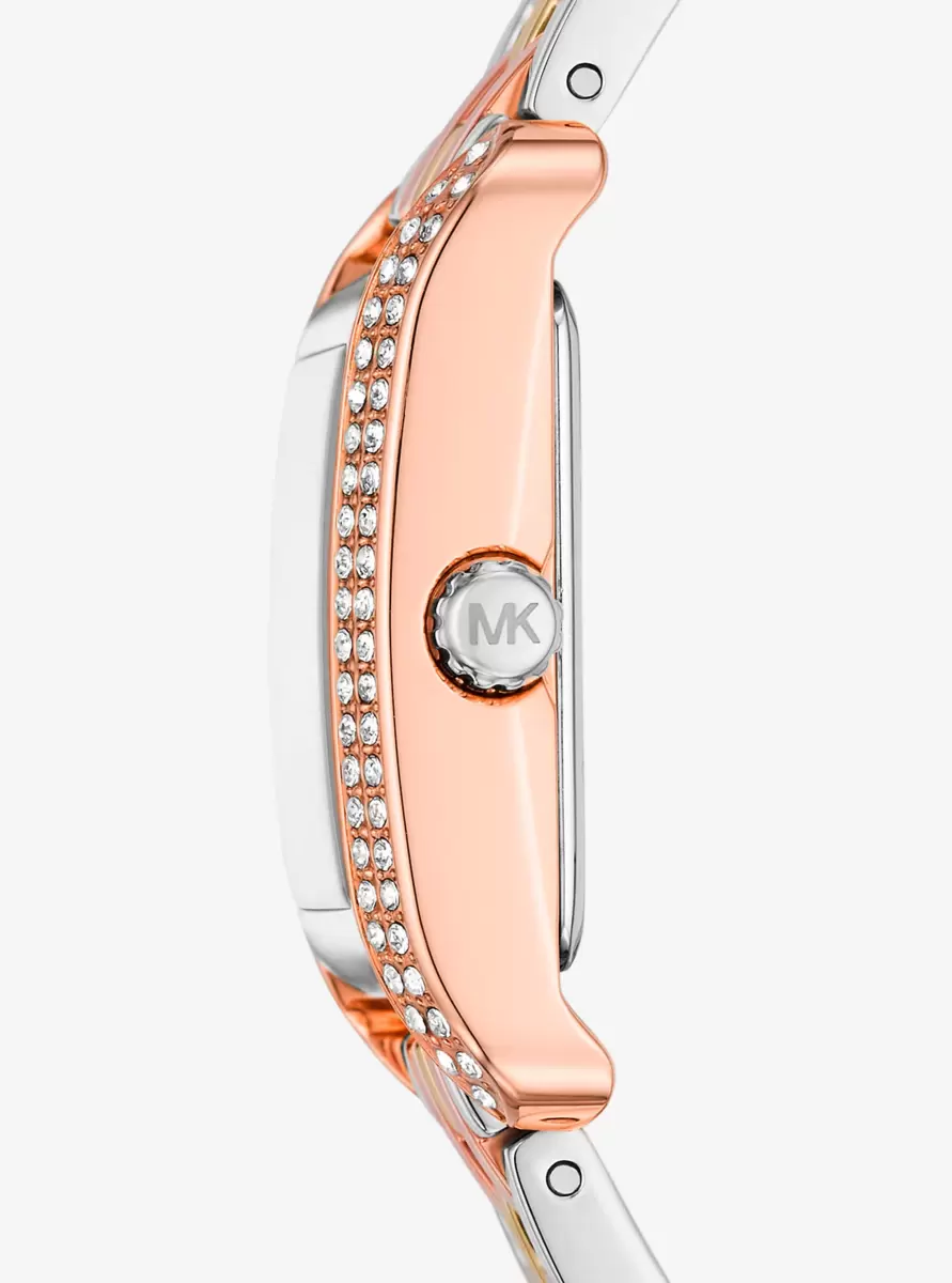 Jeśli chodzi o styl, który przyciąga wzrok, nie ma nic bardziej rzucającego się w oczy niż nasz zegarek Monroe. Pierścień wysadzany pavé podkreśla jego miniaturowy profil, a trójkolorowy pasek ze stali nierdzewnej idealnie nadaje się do zrobienia wrażenia. Noś go samodzielnie lub w połączeniu z innymi elementami, aby stworzyć ozdobę na rękę na wyższym poziomie.