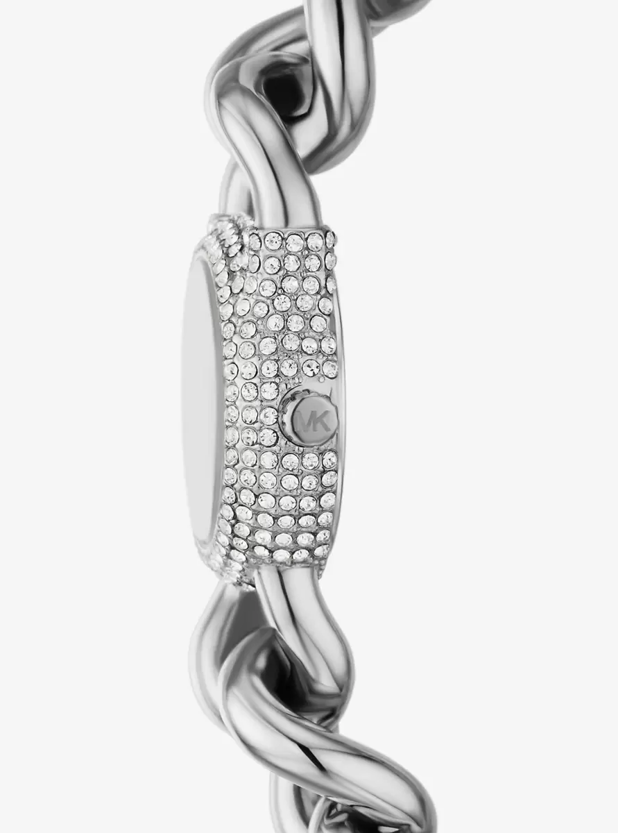 Podkręć emocje z Hamiltonem, eleganckim zegarkiem inspirowanym naszym kultowym zamkiem. Ten srebrny zegarek prezentuje nasze inicjały na minimalistycznej tarczy, a lśniące akcenty pavé na ramce odbijają światło z każdej strony. Noś go jako stylowy dodatek do biżuterii tego sezonu.