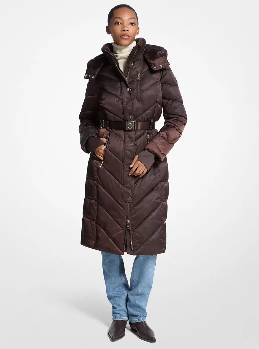 Stylowa i praktyczna, wodoodporna kurtka puchowa jest wykończona eleganckimi dodatkami i kapturem podszytym sztucznym futerkiem. Przednie kieszenie zapinane na zamek oferują mnóstwo miejsca na telefon i klucze, a elastyczne, dzianinowe otwory na kciuki utrzymują długie rękawy na miejscu i zapewniają dodatkowe ciepło. Zapięcie na zamek błyskawiczny i zatrzaski z przodu doskonale chroni przed niekorzystnymi warunkami pogodowymi.