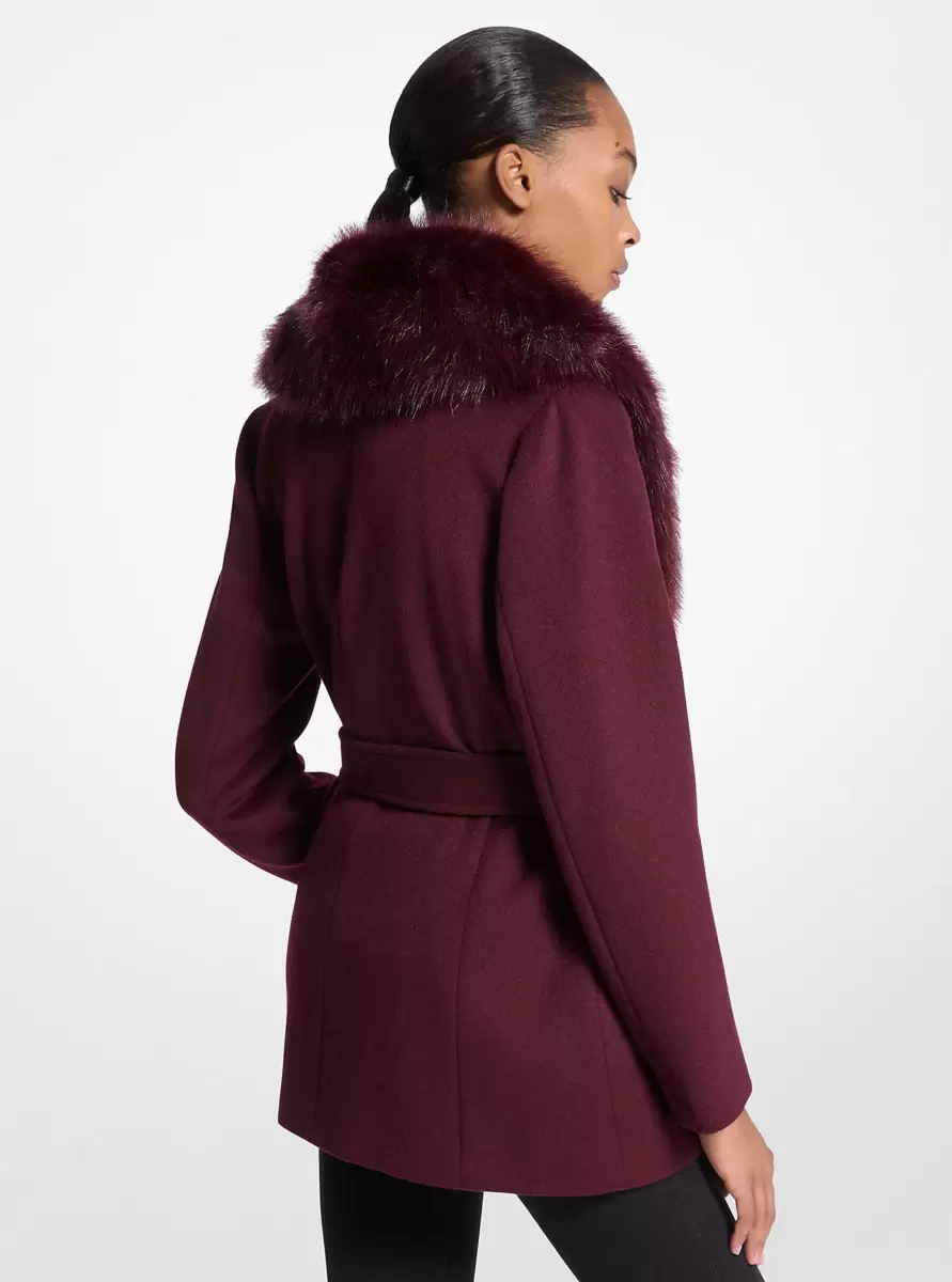 Płaszcz z mieszanki wełny z wykończeniem ze sztucznego futra