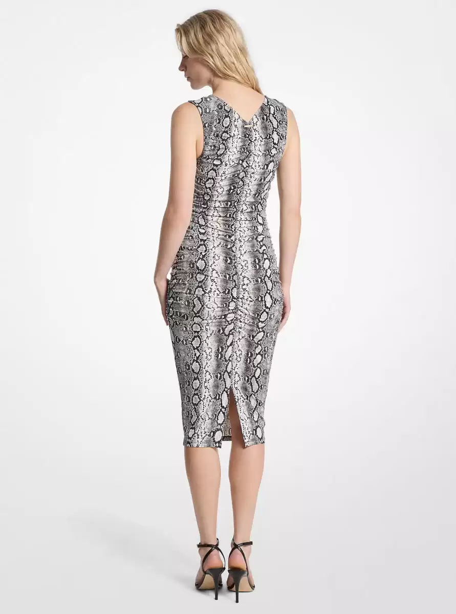 Sukienka midi z elastycznego, matowego jerseyu z nadrukiem węża i marszczeniami