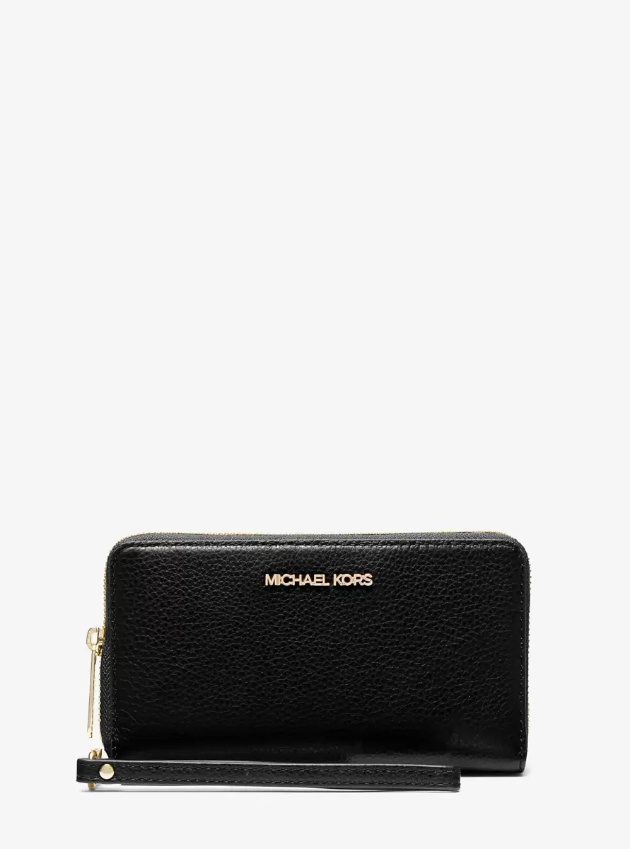 Podróżowanie z lekkim bagażem stało się łatwiejsze dzięki naszej najnowszej torebce na nadgarstek do smartfona Mercer. Wykonana z groszkowanej skóry, ta elegancka torebka ma odpinany pasek, zapięcie na suwak i pozłacane okucia dla luksusowego wykończenia. Uwielbiamy jej pojemne wnętrze, w którym bezpiecznie zmieści się telefon, karty i gotówka.
