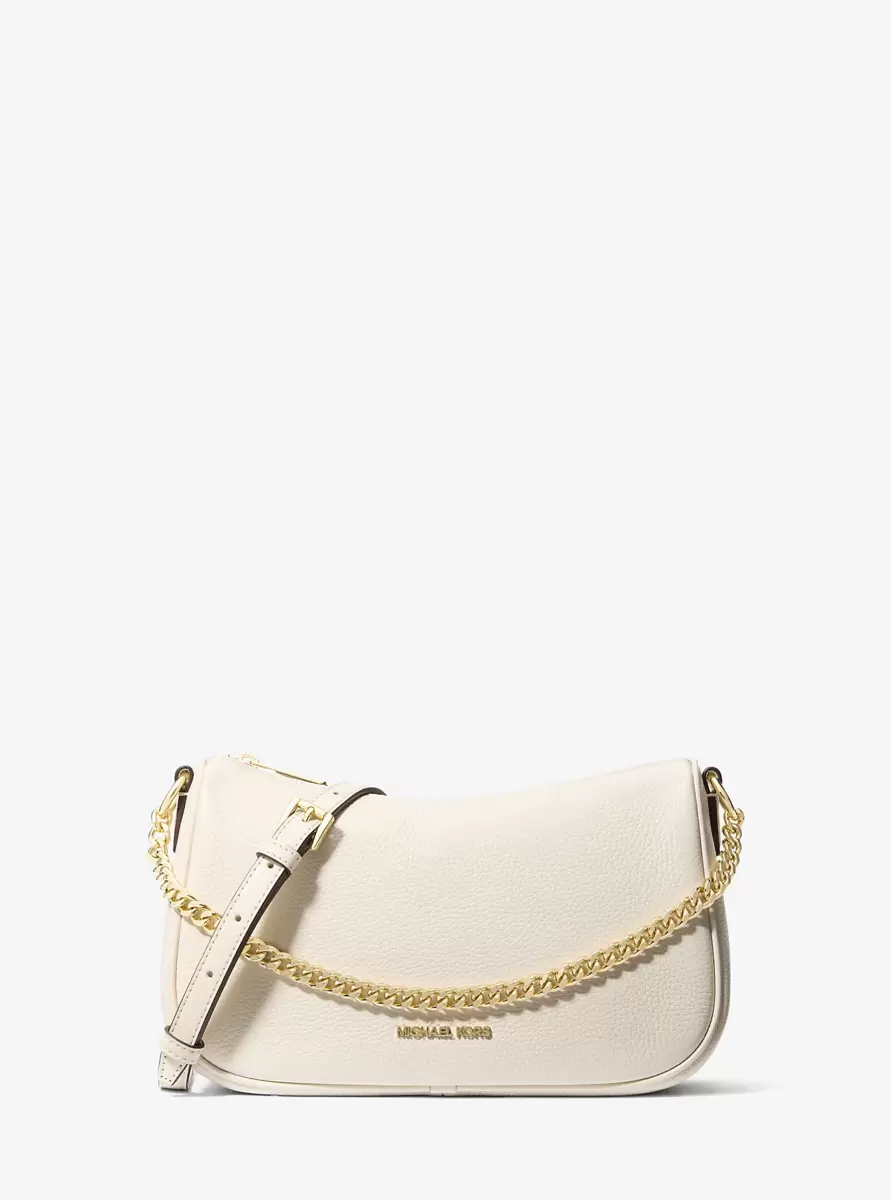 Z naszą saszetką Carmela możesz przejść od dnia do wieczora. Wykonana z bogatej, groszkowanej skóry, ta szykowna torebka ma odpinany pasek na ramię i błyszczącą, łańcuszkową rączkę, co zapewnia dodatkową uniwersalność. Po rozpięciu odsłania otwarte wnętrze z boczną kieszenią na telefon lub klucze.