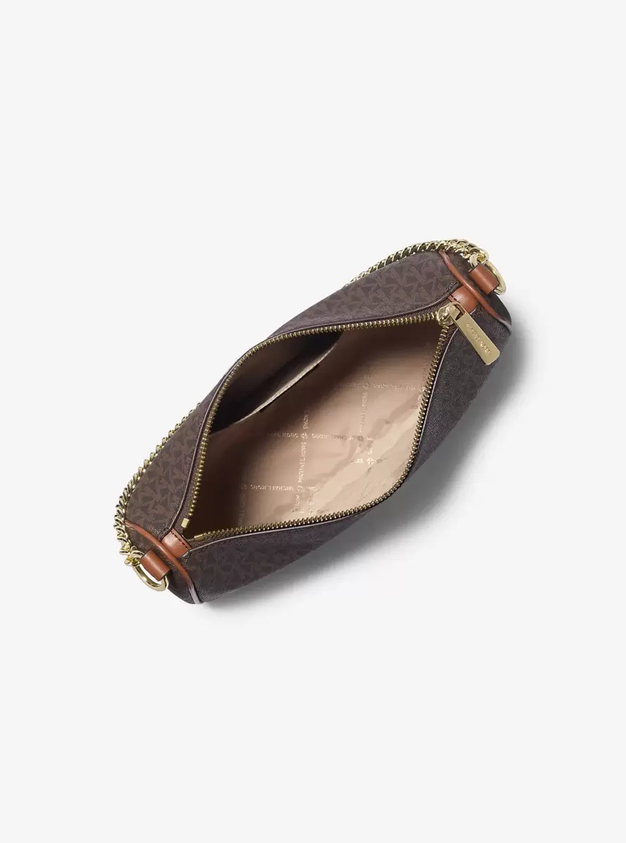 Z naszą torebką Carmela sprawdzi się zarówno w ciągu dnia, jak i wieczorem. Zaprojektowana z naszego płóciennego materiału z nadrukowanym logo, ta szykowna torebka ma odpinany pasek na ramię i lśniący łańcuszek na górze, który zapewnia dodatkową funkcjonalność. Po rozpięciu odsłania otwarte wnętrze z boczną kieszenią na telefon lub klucze.