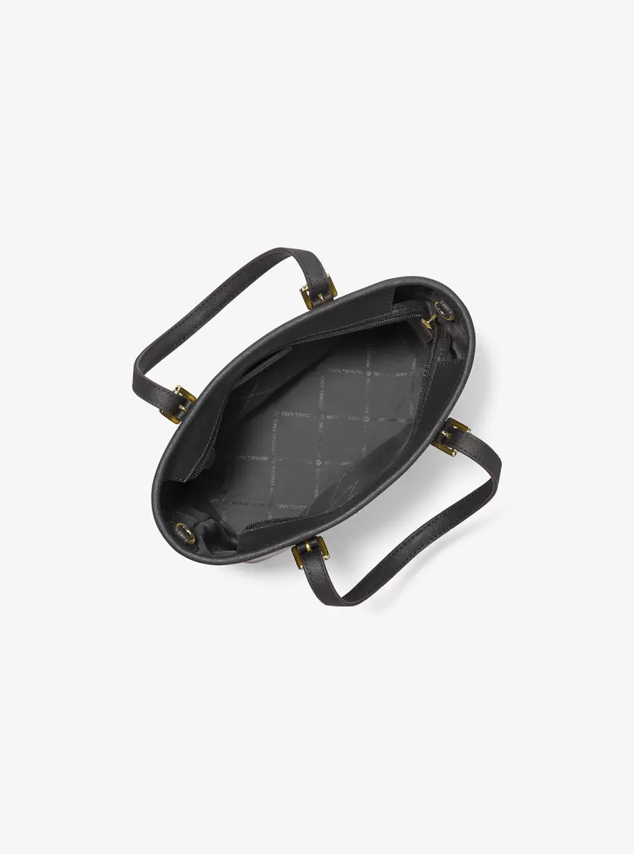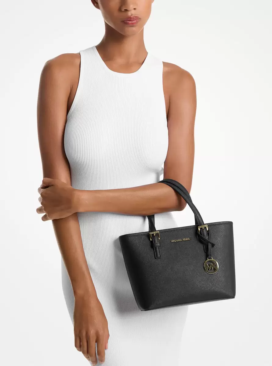 Kompaktowa, a zarazem praktyczna, nasza torba typu tote Jet Set to idealny towarzysz na co dzień. Skóra saffiano i elegancki urok nadają jej luksusowy charakter, a zapięcie na suwak u góry gwarantuje, że Twoje rzeczy pozostaną na swoim miejscu. Noś ją przez ramię w zabiegane dni, które wymagają wygody w podróży.